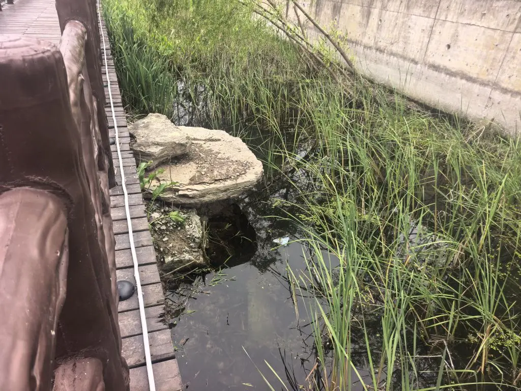 随行看景,先是穿越浅河湾的小景,考究地用起了仿木的水泥栏杆,不仅免于维护,也更融洽于河道;坚强且幸运的绿植从水泥中拔出了身体,肆意地彰显生命力!