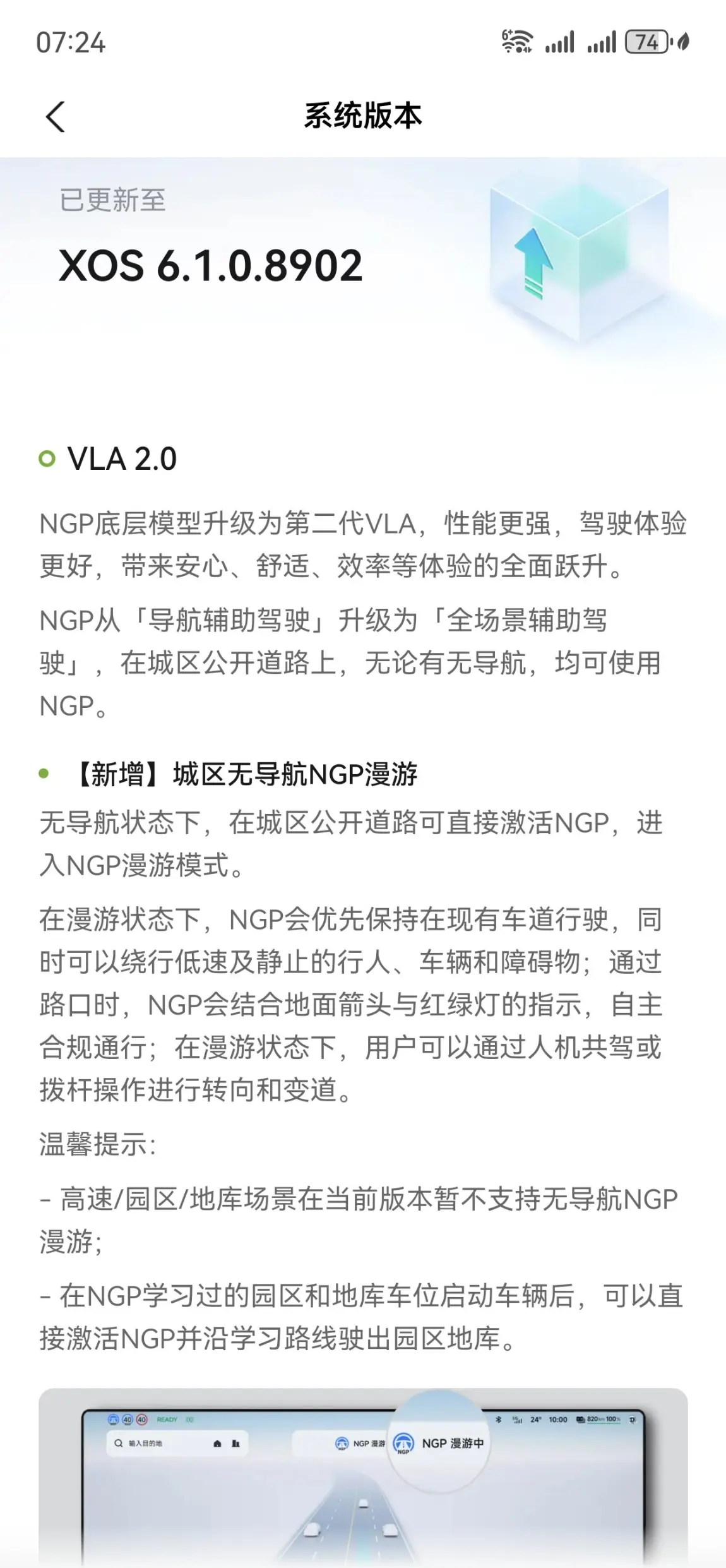 最理想的状态下,它能从你家车位直接到单位车位,人上车和下车即可,非常方便!这在以前根本做不到。但现阶段小鹏要做的是让这理想状态长期保持稳定才行!同时修正一些基础的BUG,期待一个更成熟的大更新版本。