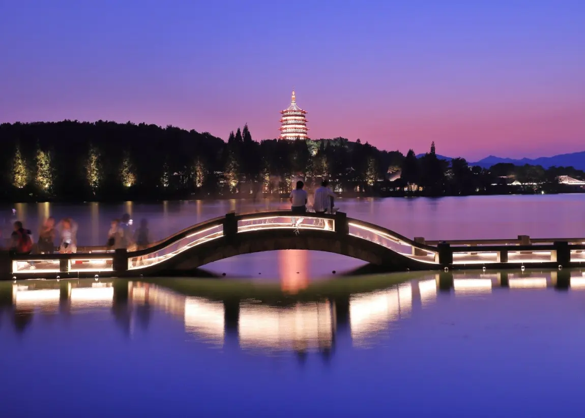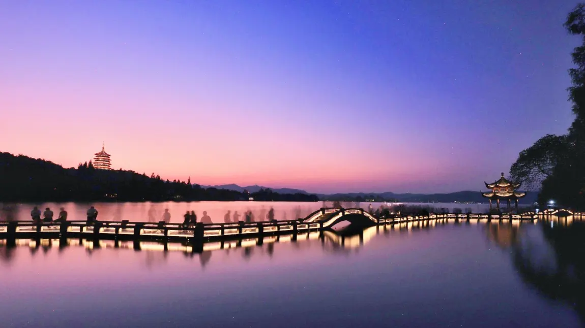 💜西湖日落:紫霞漫染的温柔
