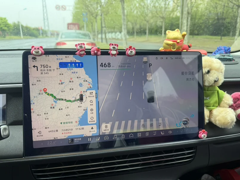 全程643公里,算上两次服务区休整和补能的时间,再加上中途下高速吃了晚餐,总共花了差不多七个半小时。
