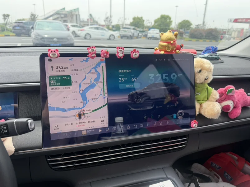 自驾长途以前最担心的就是疲惫,但G6的ngp让我没有后顾之忧。开启高速NGP后,车辆能自动保持车道、跟车行驶、智能变道超车,我和老婆轮流开车,有它帮忙,双手双脚都轻松不少,注意力也能更集中。遇到大货车时,系统会自动保持安全距离并平稳超越,安全感拉满。每开两个小时,我们就会进服务区休整,让娃下车跑一跑、伸伸腿,吃点水果补充能量,顺便给G6补能。义乌到黄冈高速沿途充电桩分布很密,快充半小时就能补能不少,完全不耽误行程。