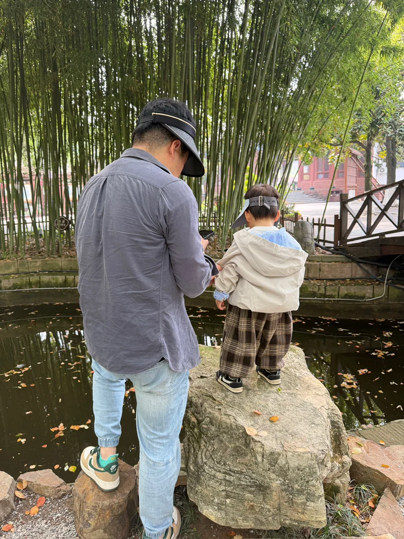 在景区慢慢的闲逛,偶尔停下来给娃讲苏东坡被贬黄州的故事,小家伙似懂非懂地点着头,却对河边的小石子、水里的小鱼和乌龟更感兴趣。