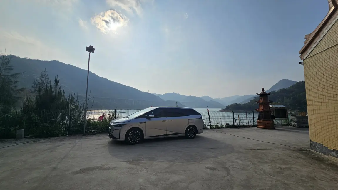 找一处视野开阔的临湖空地停好车,小鹏X9与这片湖光山色完美相融,科技感的车身搭配自然山水,随手一拍都是氛围感满满的大片,停在湖边就像一道亮眼的风景。