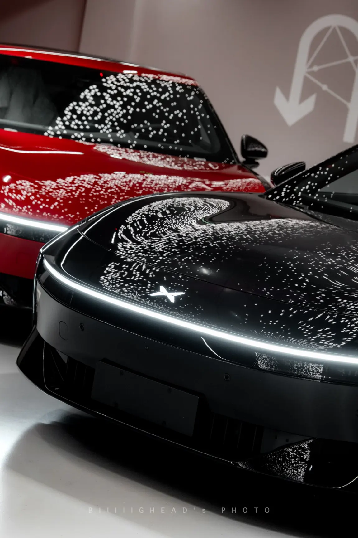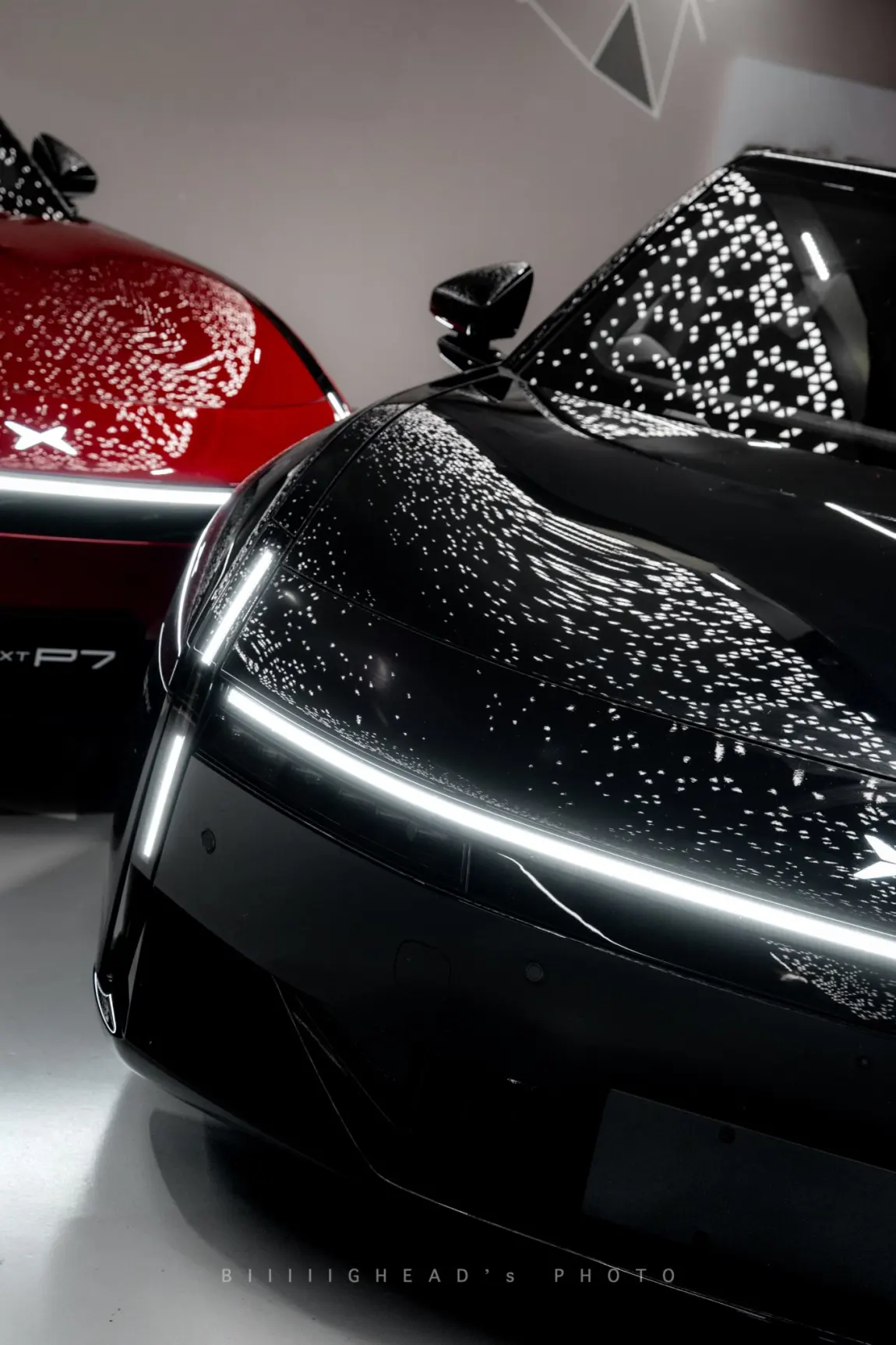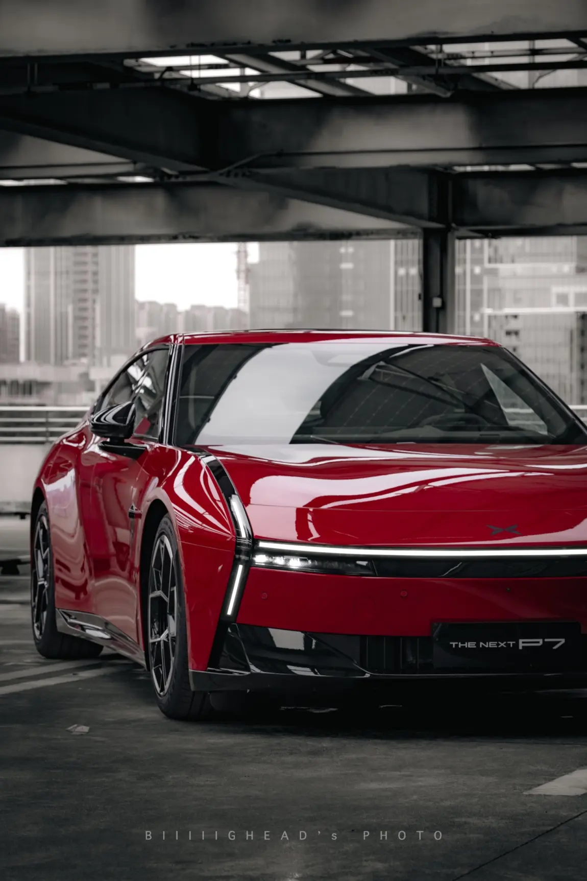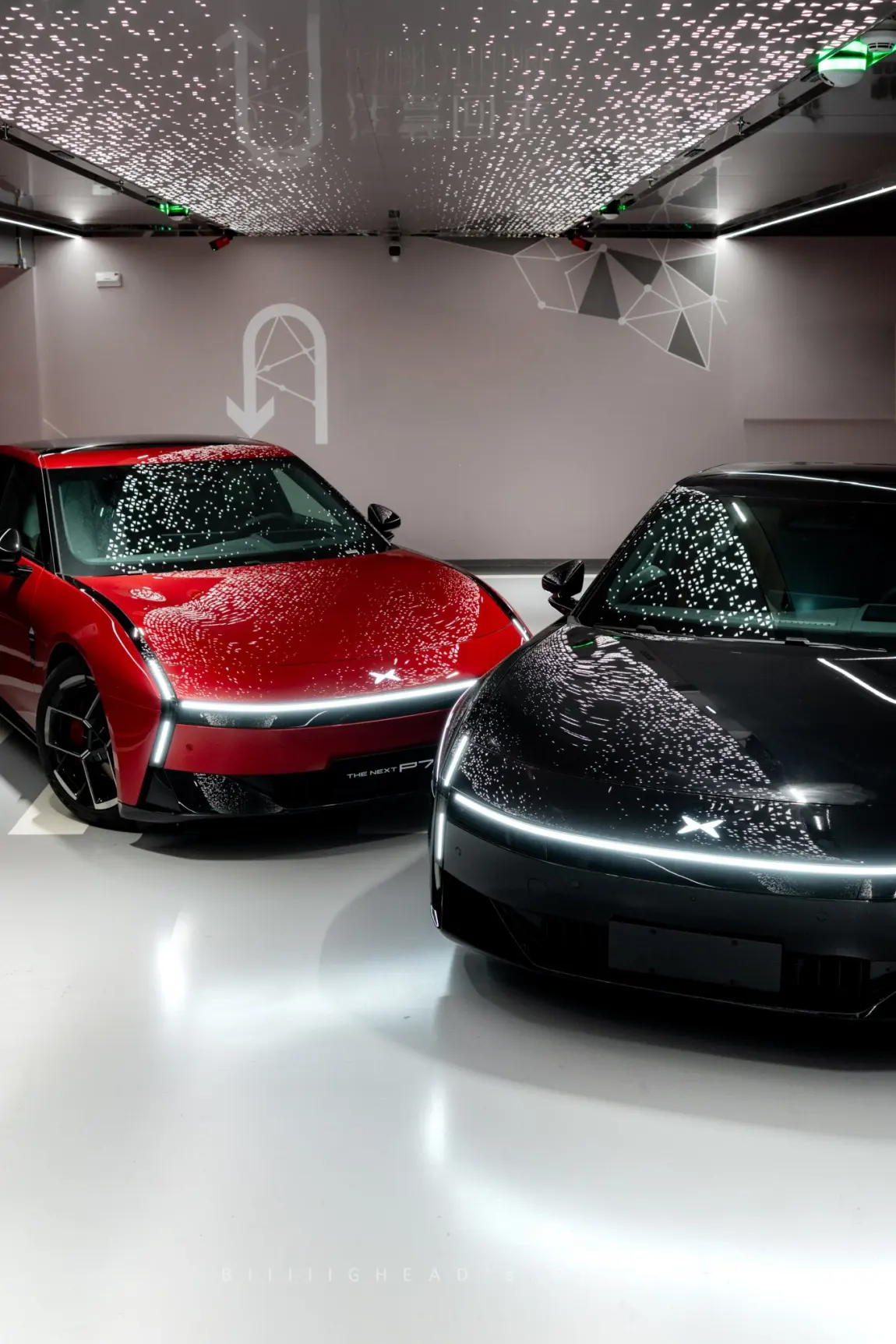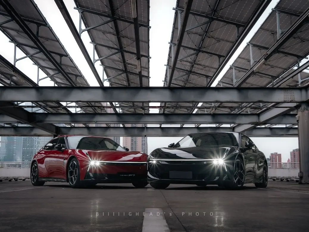 这次拍全新小鹏P7的黑红双车,一共跑了三个场景,最后整理出四组照片。