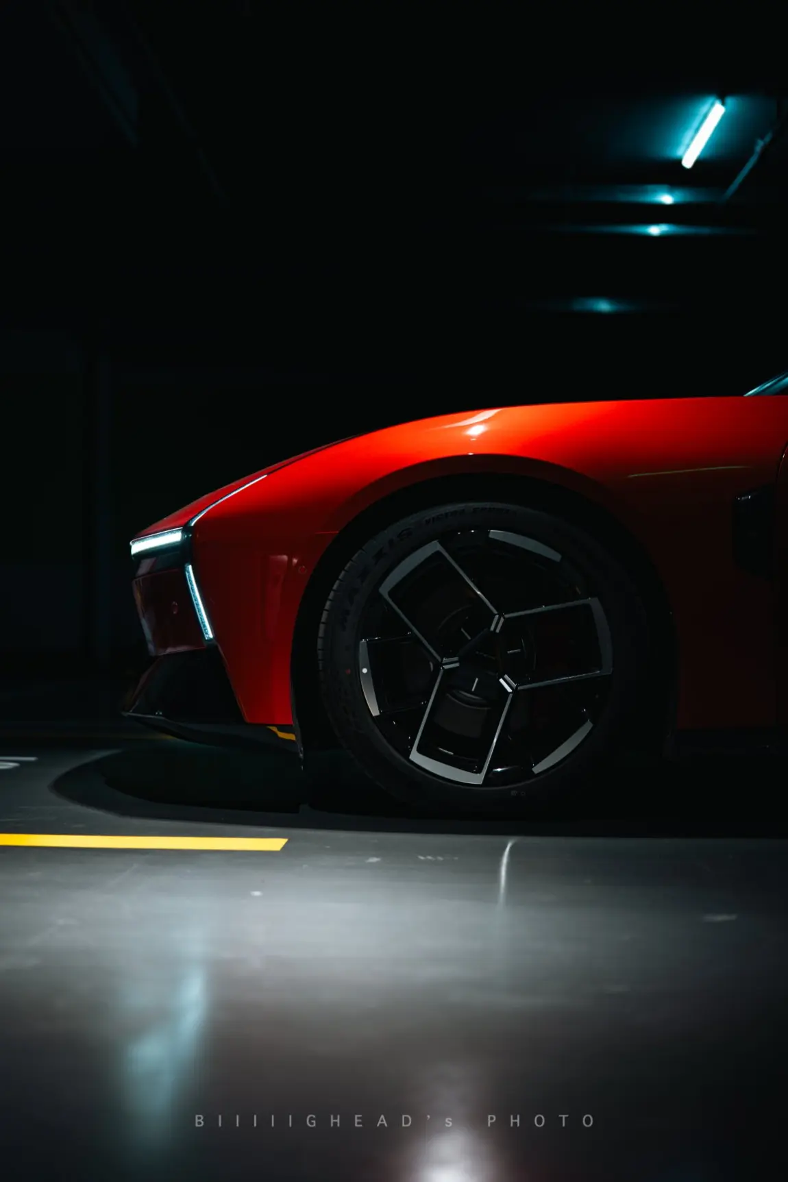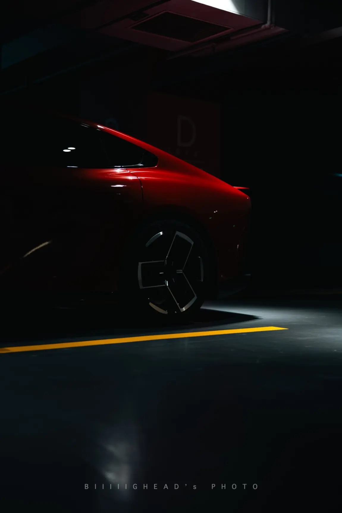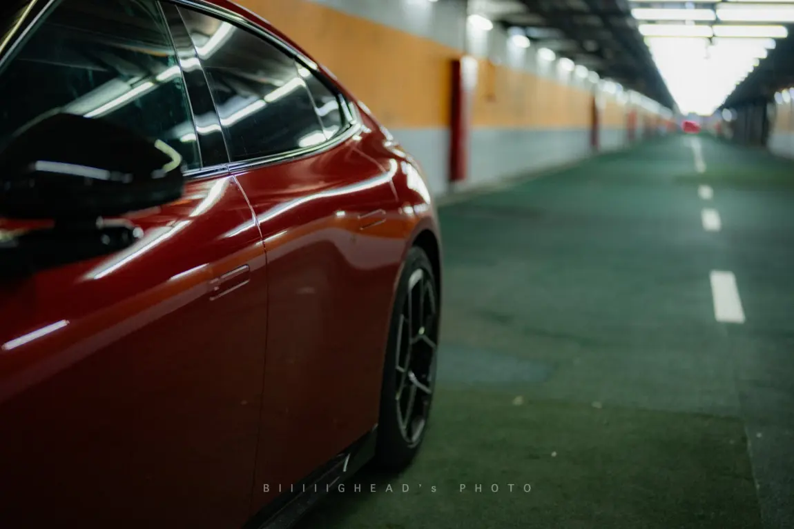 剩下两组留给红车单独发挥。地库这组偏压抑一点,低光环境把红色压得很深,视觉冲击挺直接的