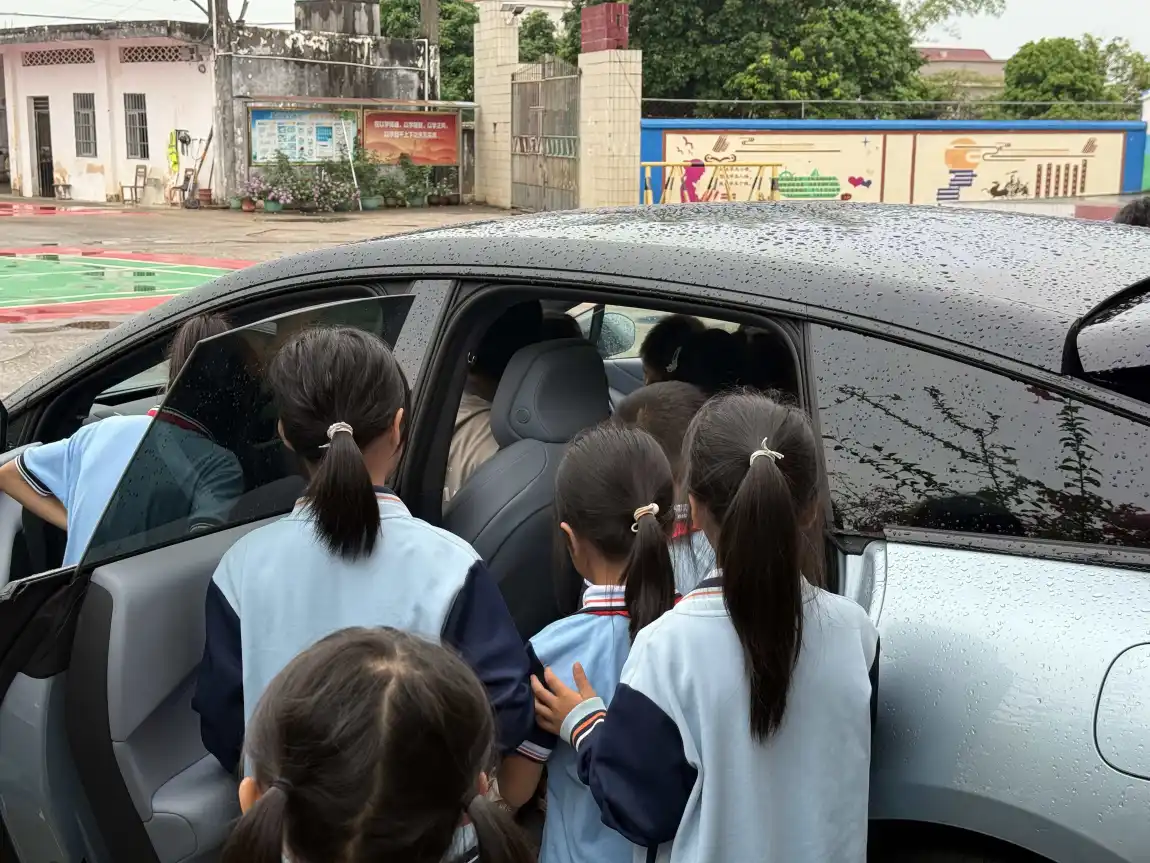 阅读课从教室一直延展至户外,志愿者们邀请孩子们上车体验,近距离感知新能源汽车的独特魅力。新能源不仅意味着更清洁、环保的驱动方式,还为汽车在智能、静谧与舒适性等方面带来了更多可能性。