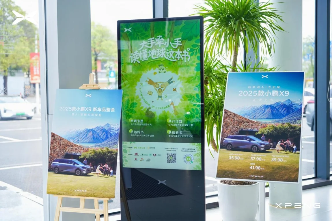 2025年,小鹏公益联合小鹏汽车全国100+家门店,发起“大手牵小手·共读地球这本书”公益阅读倡导行动;小鹏汽车500+家门店助力项目推广,以门店为阵地,打造藏在家门口的环境科学科普科普空间,向更多家庭传递绿色低碳理念。