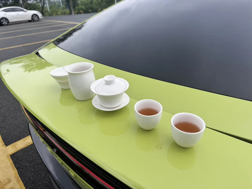 寻一处绿树环绕的静谧之处,停稳爱车,调好尾翼角度,将茶倒上,再让小p打开外放音乐……氛围感瞬间拉满!