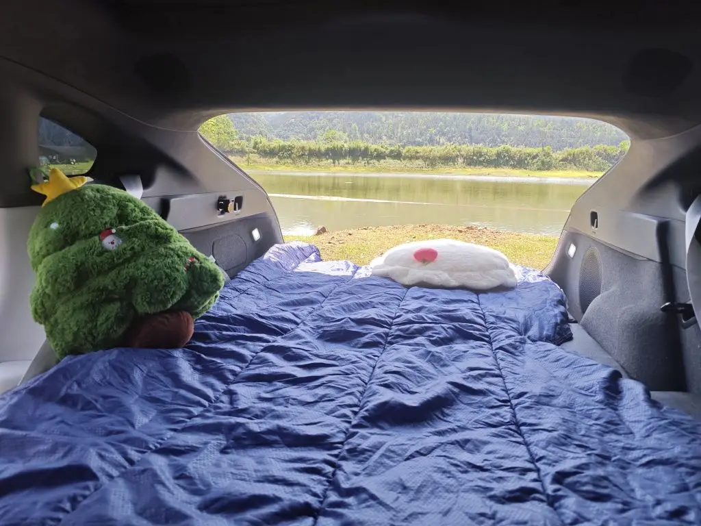 之前真的被网上各种找平床垫解决方案搞到快放弃床车露营了,踩过的坑能绕车三圈。跟风花了三四百块钱买过充气床垫,打气放气半小时,一股异味,半夜还塌了,冬天睡冻得慌,夏天又闷得慌,看着厚乎乎的,关键是根本解决不了车后排的坡度,睡一晚起来腰都难受的要死,收纳起来直接占了半个后备箱,用两次就扔家里吃灰了。很多网友手工改造方案,垫塑料箱、拼木板,开车的时候哐哐响,挪来挪去全是麻烦,钱没少花,罪还没少受。