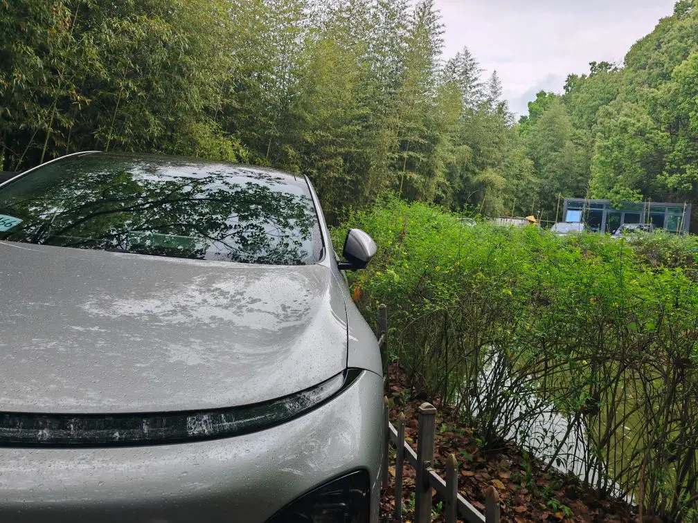 把车停在竹林边,车身与自然绿意相融,随手一拍就是氛围感大片。