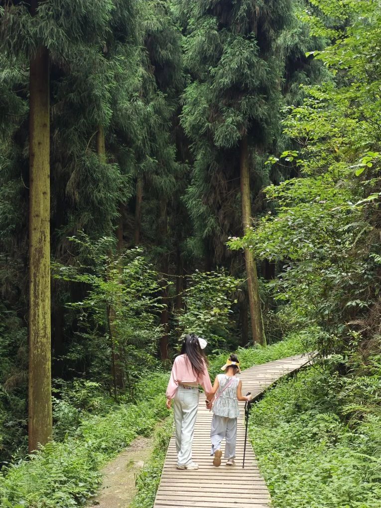 ☘️牵着孩子的小手,一步步踩在林间木质栈道上,慢悠悠徒步向前,沉浸式感受森林里的慢节奏。小朋友在开阔的草坪上肆意奔跑、开怀大笑,脸上满是无忧无虑的童真,鲜活的模样,和这片盎然的绿意格外相配。