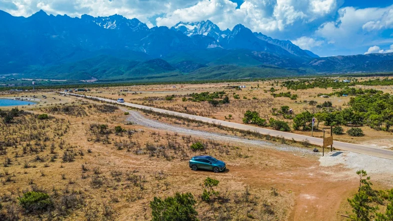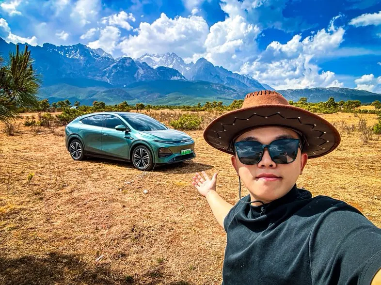 一路开着我的小鹏G6自驾环游中国,在云南边境翻山越岭长,今天终于抵达玉龙雪山,寻找到一处空地和雪山合影留念,心里特别满足。