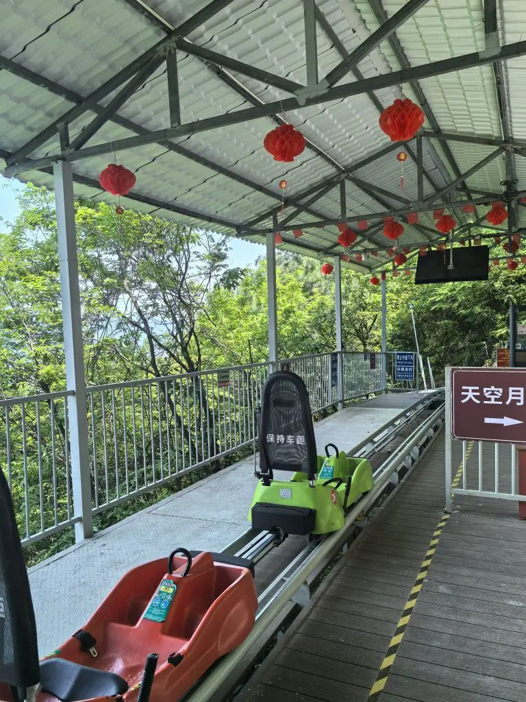 下山有两种超酷的选择:刺激的新西兰滑车和趣味十足的管式滑道。考虑到孩子年纪较小,我们选了管式滑道。坐进滑道车,系好安全带,就能出发啦!最棒的是可以自己驾驶控制车速,想慢就慢看风景,想快就快感受风驰电掣,穿梭在山林间,两边的树木飞速后退,风在耳边呼啸,既有小刺激又足够安全,孩子一路尖叫欢笑,全程兴奋到极点。从山林萌趣的松鼠互动,到省力好玩的木马登山,再到惊险又安全的管式滑道,梨川漫谷把亲子游玩的舒适度和趣味性平衡得刚刚好。这里没有高强度的徒步,不用费力抱娃,却能让孩子亲近自然、释放活力,是周末遛娃的绝佳选择。一次轻松又快乐的旅程,不仅收获了满屏美景,更珍藏了亲子间的美好时光。推荐给各位宝妈,带娃来梨川漫谷,解锁偷懒式遛娃,收获双倍快乐!