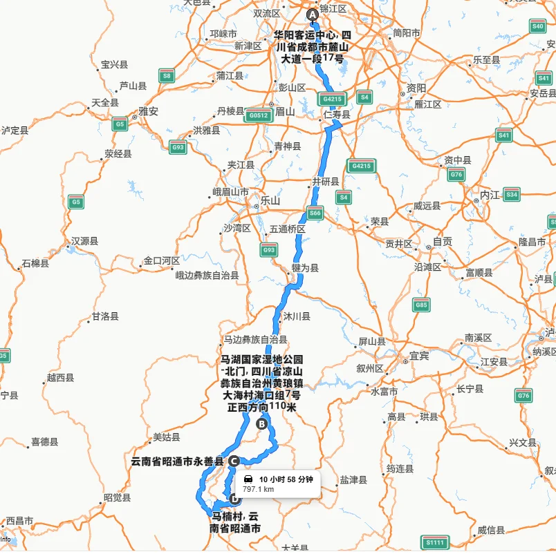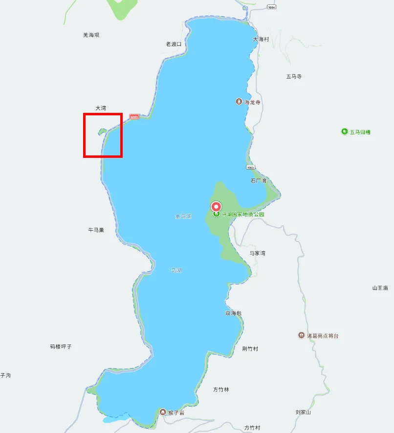 推荐:马湖沿岸多处可露营而且游客稀少,红框处最佳,有干净的自来水、卫生间,露营免费。