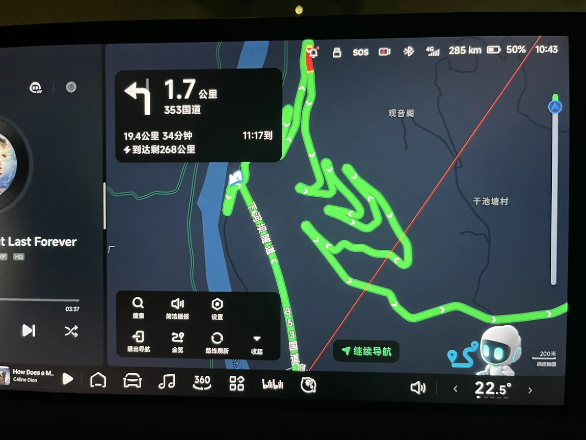 G9出发时WLTP544公里,惊喜的是G9的低电耗表现。中途在永善县充电,800V高压平台说实话确实快,在永善县县城吃个羊肉米线的时间,充电就完成,而且南方电网的电价真心不贵。全程补电大约40元,到家还有260公里。纯电出行实惠又经济,让春日远行更无负担。