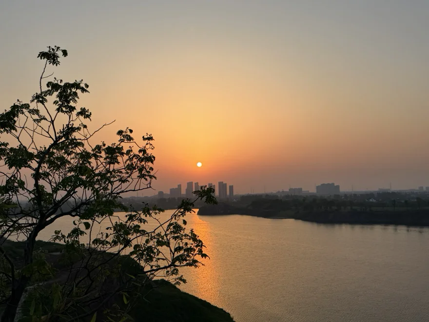到神仙湖的时候,正好赶上夕阳压下去之前那十几分钟。
