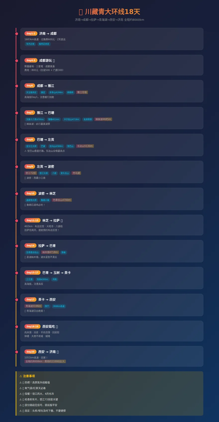提前规划好路线、休息地点这些,规划好预算,出发前能准备的也只有这么多,分享一下我们的路线行程图