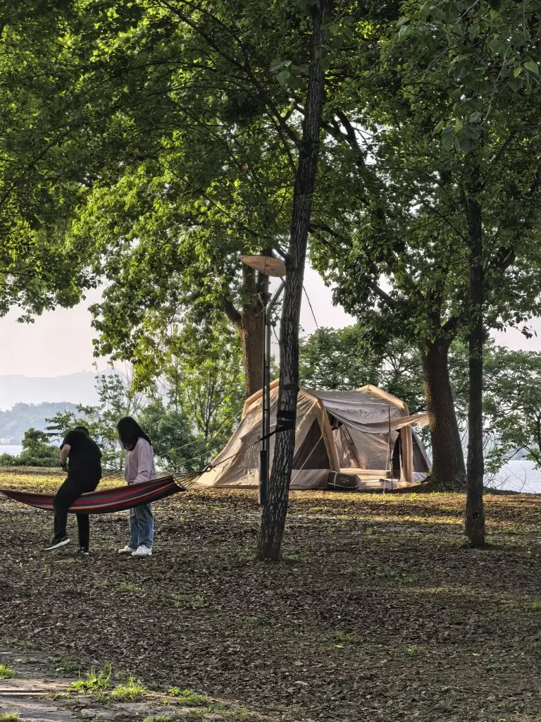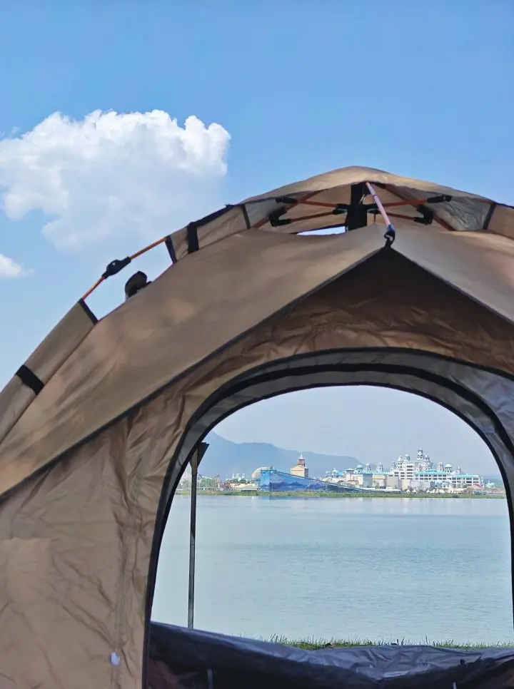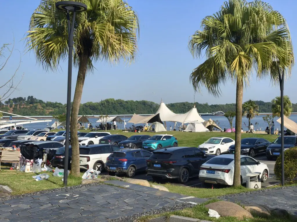 先来说第一个目的地!是在常德柳叶湖度假区!这里的湖边草坪都可以露营🏕!最多的就是在沙滩公园露营