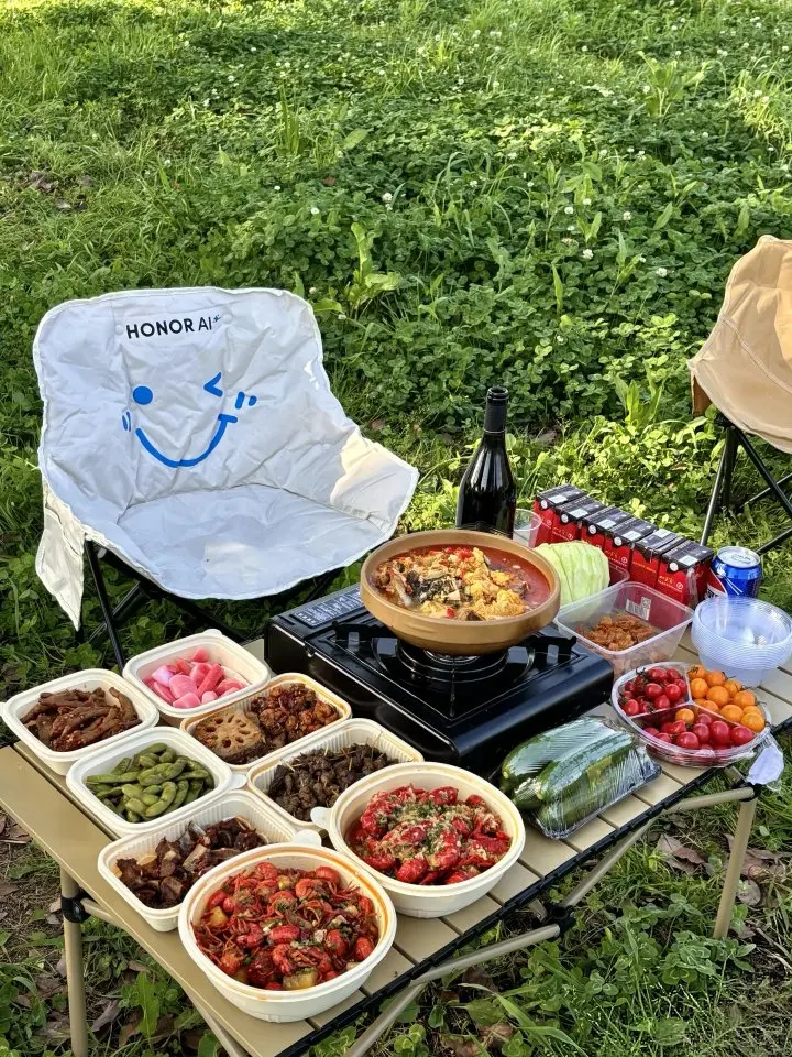 我准备的东西最多的就是吃的,卤鸭脖、卤龙虾等等,还带了一个小炉子,加热吃家里带过来的钵子菜,累了就去帐篷里躺下远眺一下湖景,偶尔会有湖风吹过,真的好舒服!