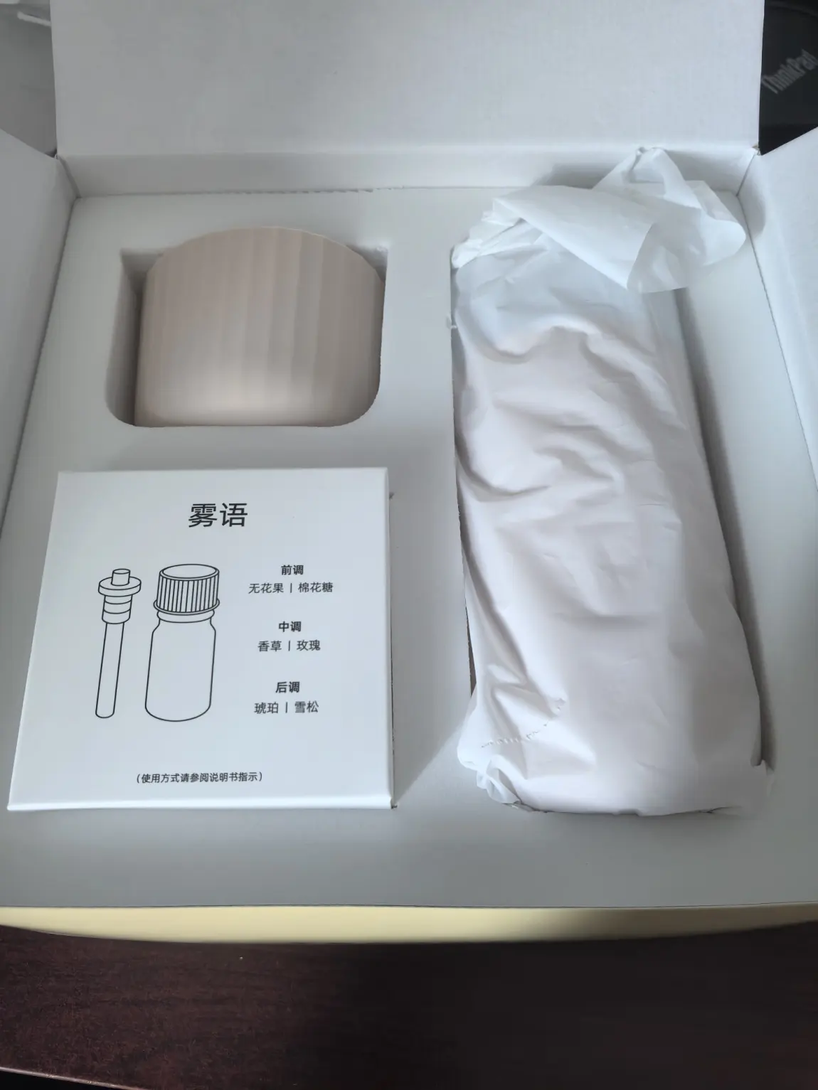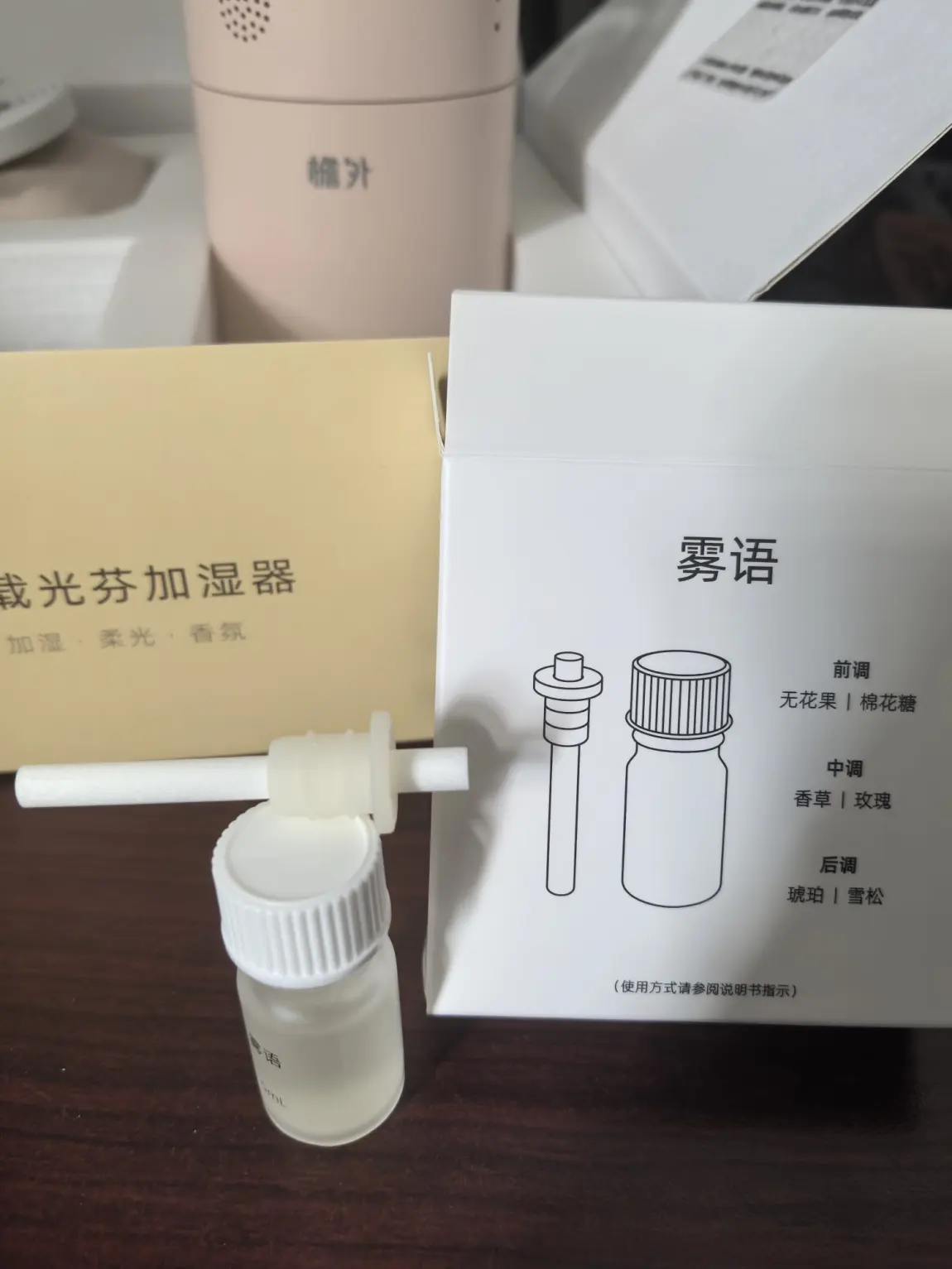 加湿仓和香氛仓完全分开,香氛液不会被水稀释,水雾又细又柔,完全不会在玻璃上留水渍,几秒就能闻到淡淡的清香,自带的「雾语」香氛真的绝了!前调无花果+棉花糖的甜,中调玫瑰+香草的温柔,后调琥珀+雪松的沉稳,不是那种刺鼻的工业香,是像自带体香一样的温柔气息~