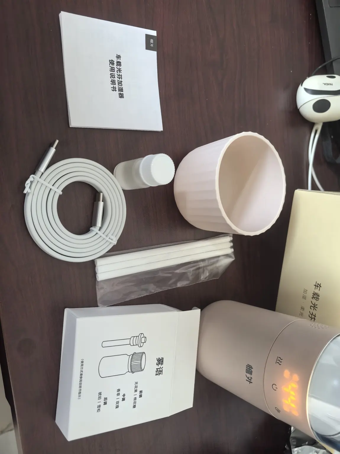 配件也超贴心:主机、「雾语」香氛液、Type-C快充线、说明书,5分钟就能组装完成,手残党也能轻松上手!把香氛管插进主机,加上纯净水,扣上盖子,按下开关的瞬间,直接开启属于你的车内小世界~