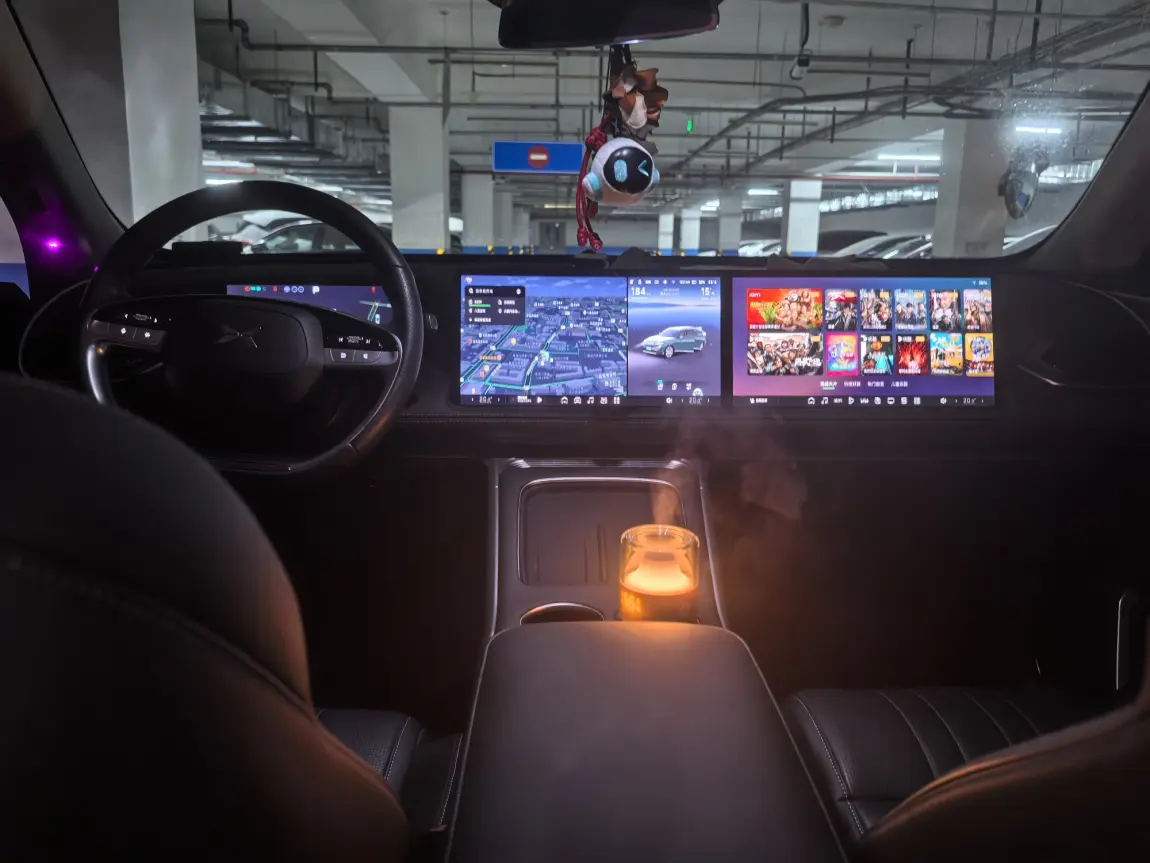 搭配小鹏的三联屏科技座舱,冰蓝色灯光一打开,瞬间有种未来移动堡垒的感觉,雾气和冷光交织,连车内的质感都高级了好几个度,科技党狂喜!