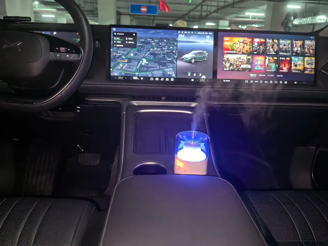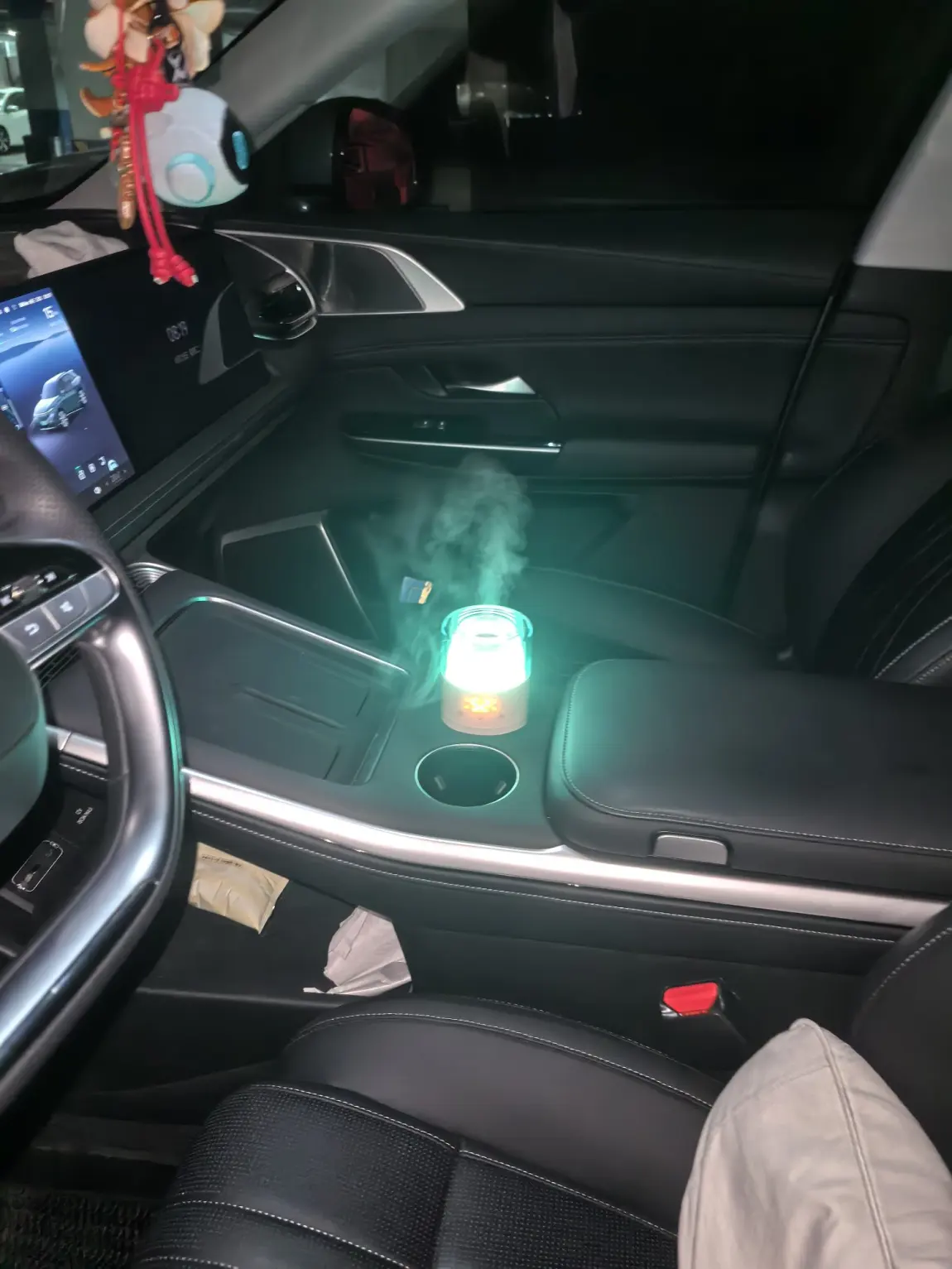 傍晚开暖风的时候,开上暖黄色灯光,雾气随着暖光缓缓飘出来,整个座舱都裹上了一层温柔的滤镜,一天的疲惫都被这暖乎乎的光和淡淡的雾气揉碎了,谁懂这种被治愈的感觉啊!