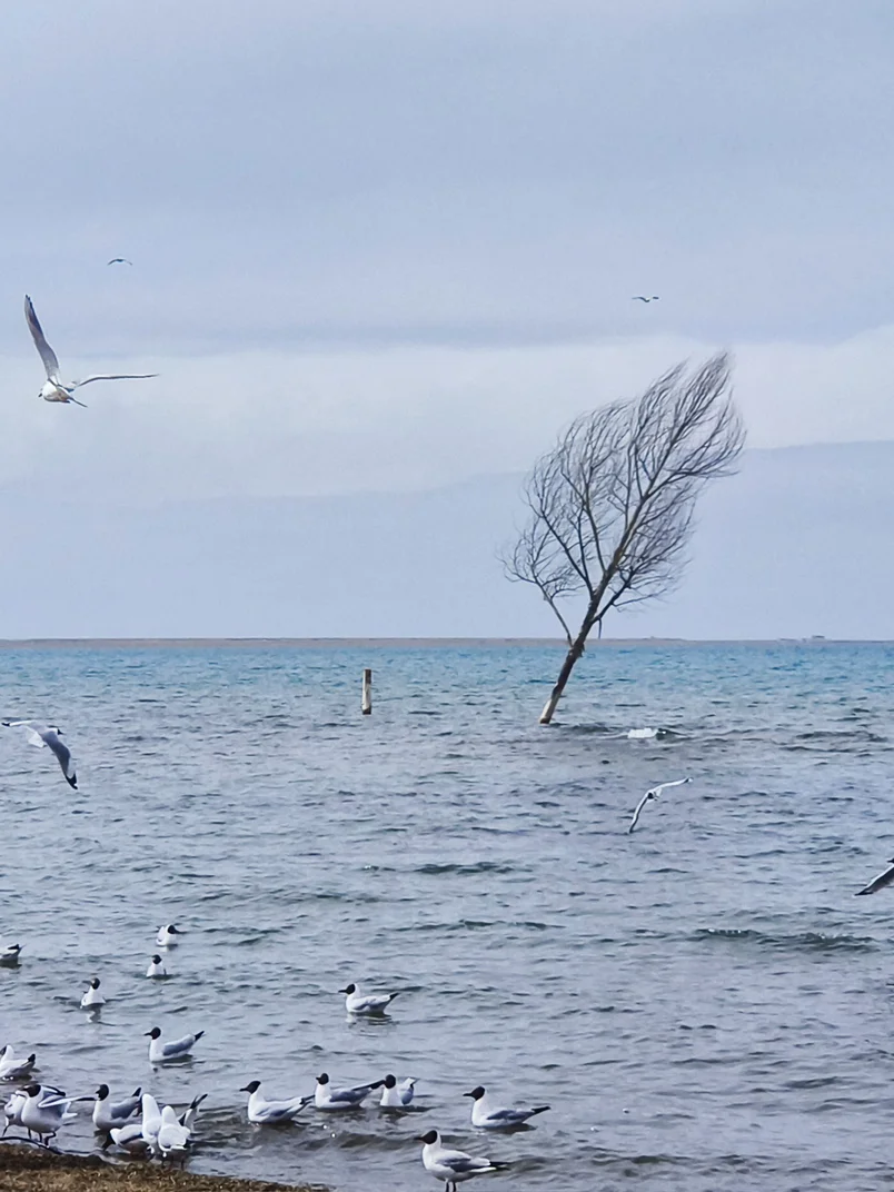 一路畅通到离谱,高速上连车都没几辆,下午就到了青海湖边。找了个没人的野滩停下车,湖水蓝得像宝石一样,远处还有成群的牦牛在吃草,风一吹全是青草和湖水的味道,别提多治愈了。我们在湖边坐了一下午,直到太阳落山才去镇上找酒店。