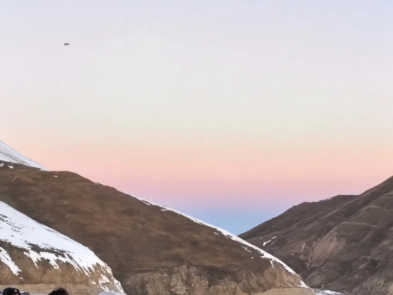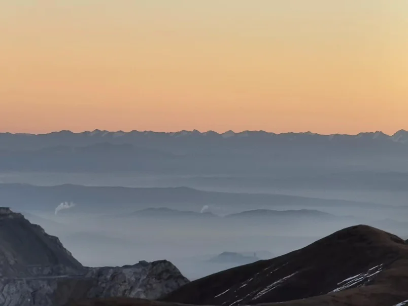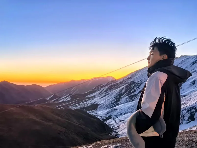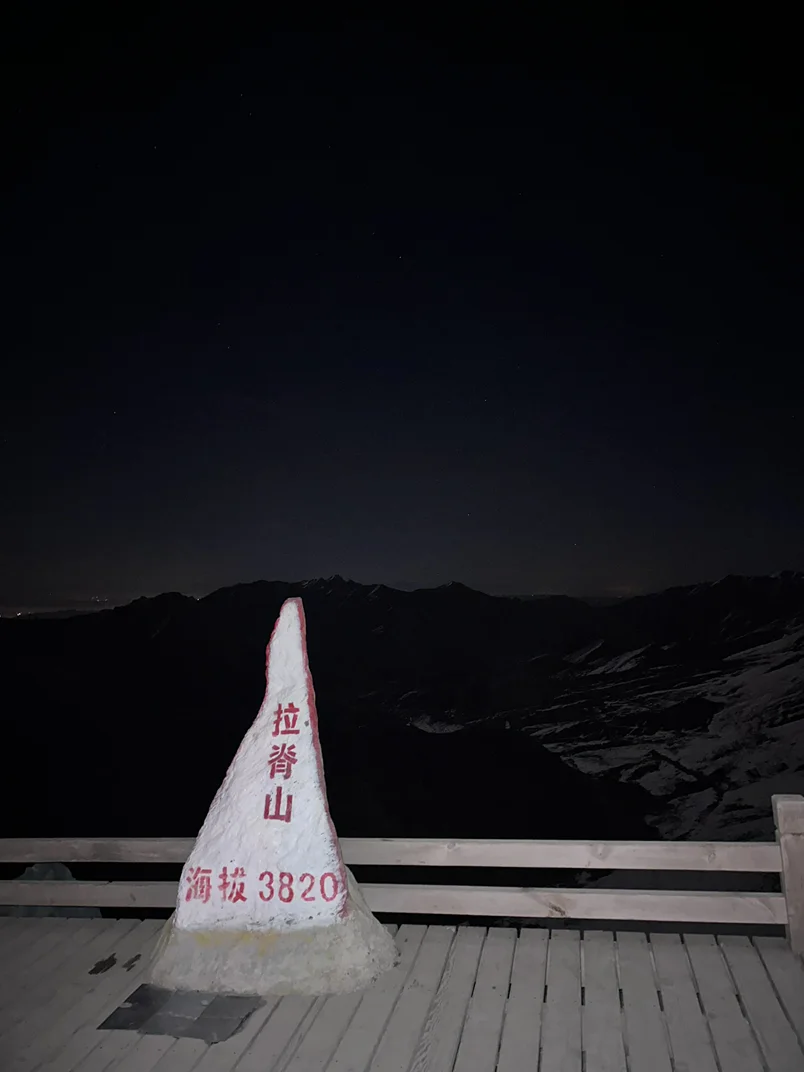 第二天凌晨3点半就爬起来往拉脊山赶,4点多到垭口的时候,整个山头就我们几辆车!不用抢位置,不用挤人,连个卖东西的小贩都没有,安安静静地等着日出。当时山上零下3度,风大得能把人吹跑,我们裹着两件羽绒服,戴着帽子围巾,还是冻得鼻涕直流,脚都麻了。