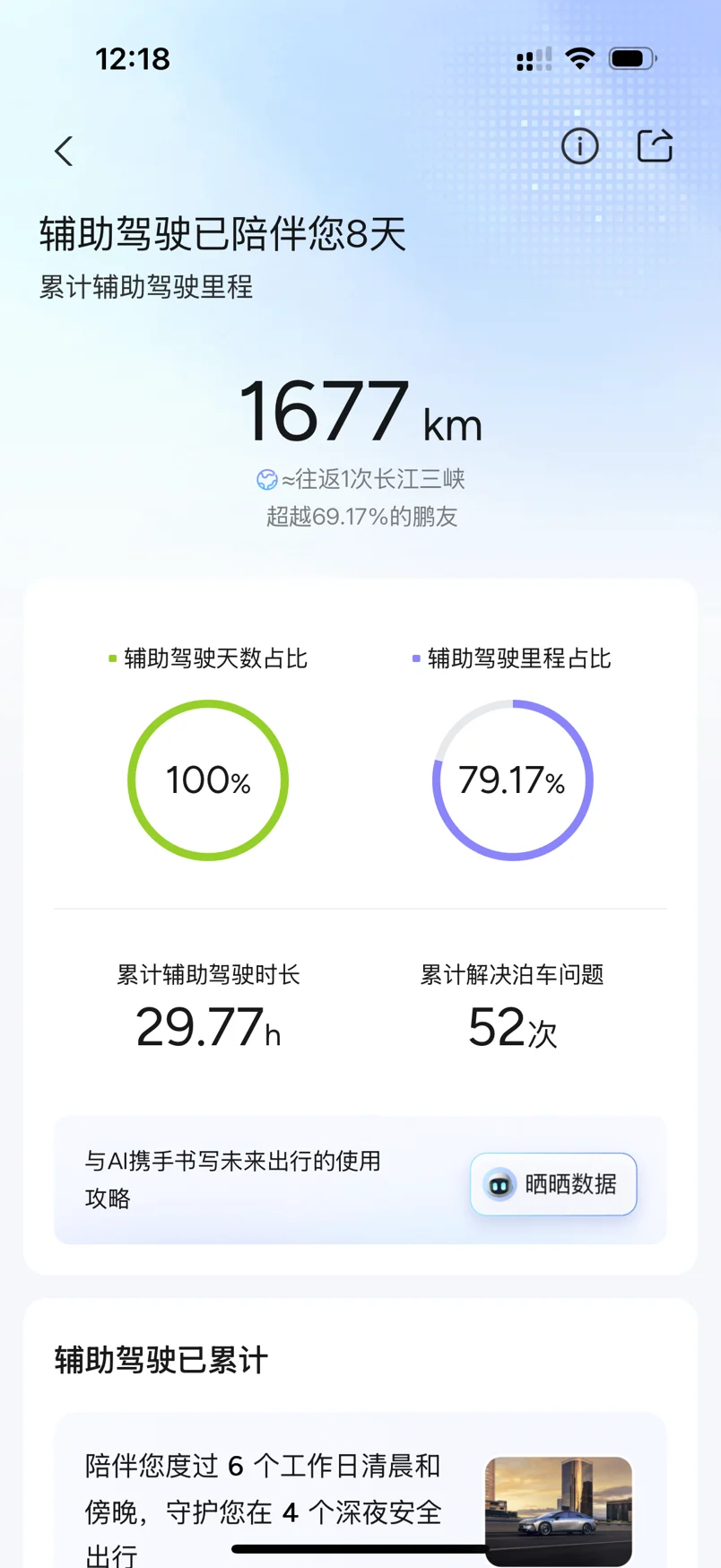 最绝的还是小鹏的智驾!全程高速我基本没怎么动手,NGP自己跟车、变道、超车,连过隧道和弯道都稳得一批。我就坐在主驾上听歌、吃薯片、跟朋友唠嗑,开了整整8个小时,下车的时候一点都不累。跟我一起去的朋友开他的老奥迪,开到一半就喊腰快断了,换我开他的车,半小时就觉得浑身难受,手酸脖子僵,真的完全回不去油车了。