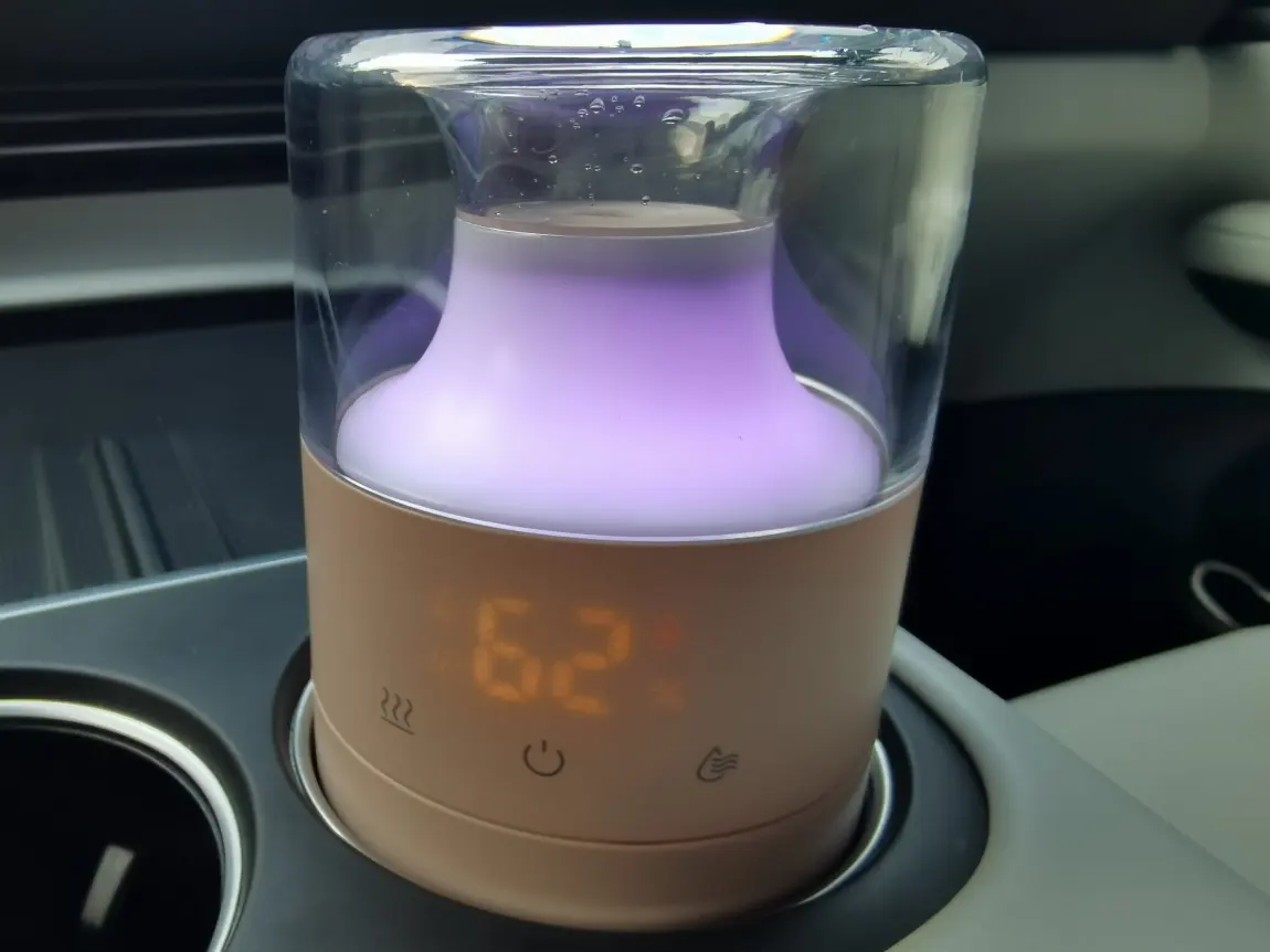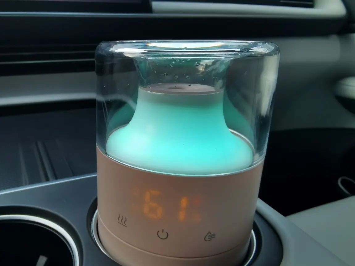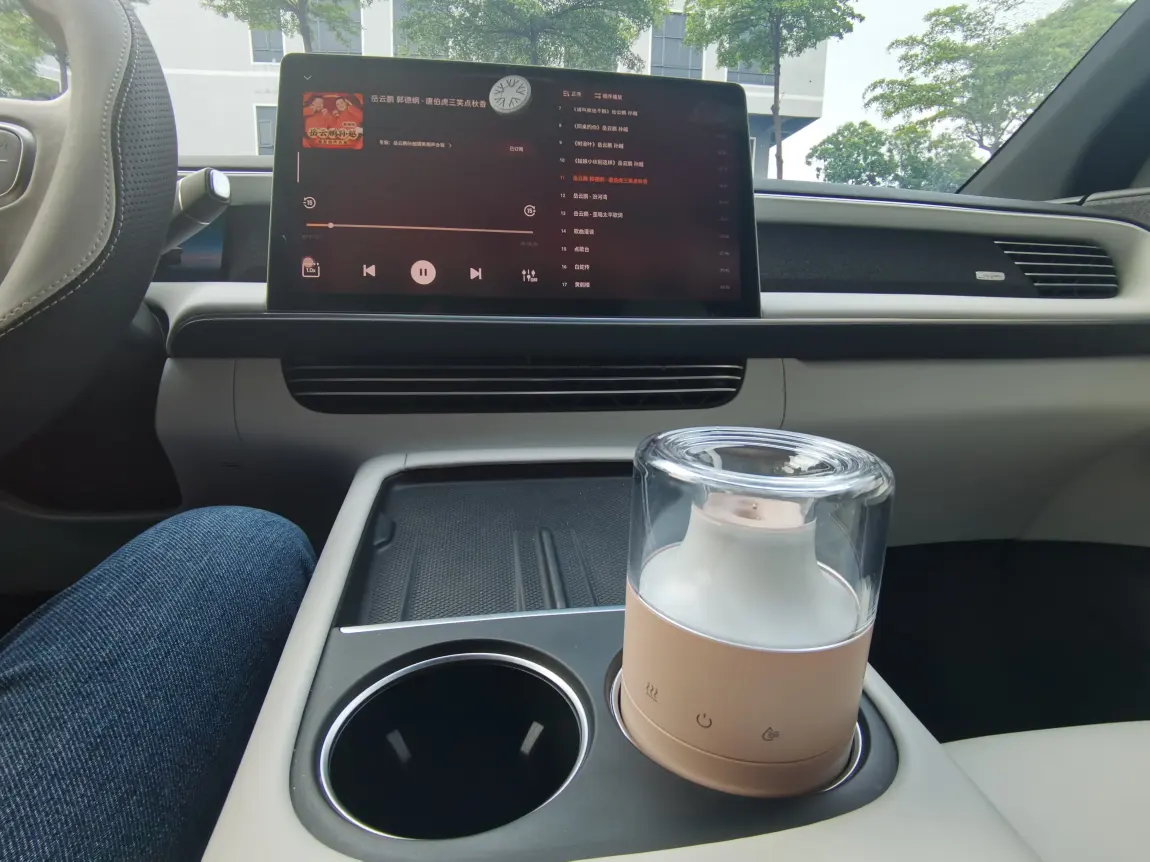 想要打造满分治愈体验,加湿香氛绝对是点睛之笔,给舒适感再升级。我特意搭配了车载加湿香氛机,小巧机身刚好放在杯架里,不占车内空间,颜值还和小鹏内饰完美适配。
