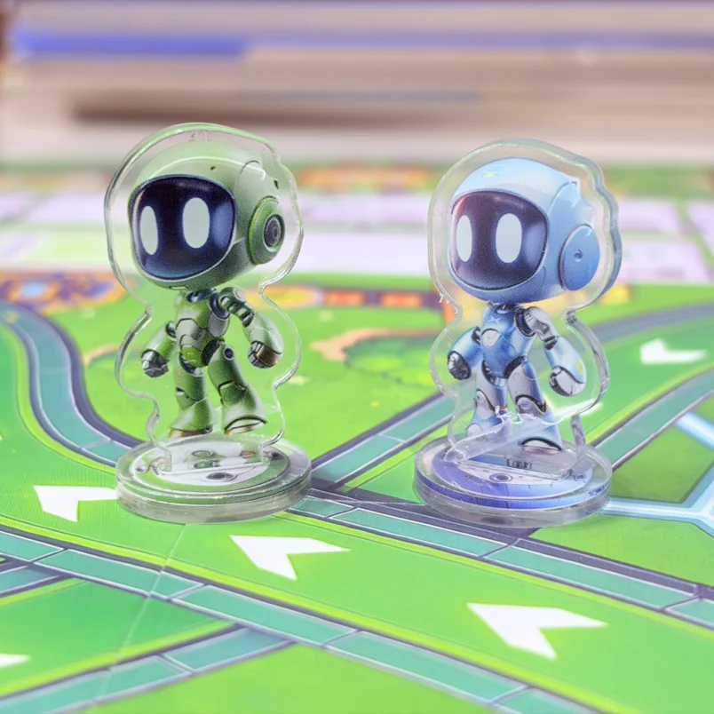 首先是清新治愈的绿色科技风包装超吸睛,拆开配件细节拉满:可折叠卡通城市棋盘、Q萌小P形象棋子、记分板、精致卡牌质感很棒👍,还有详细的游戏玩法说明,轻轻松松上手!