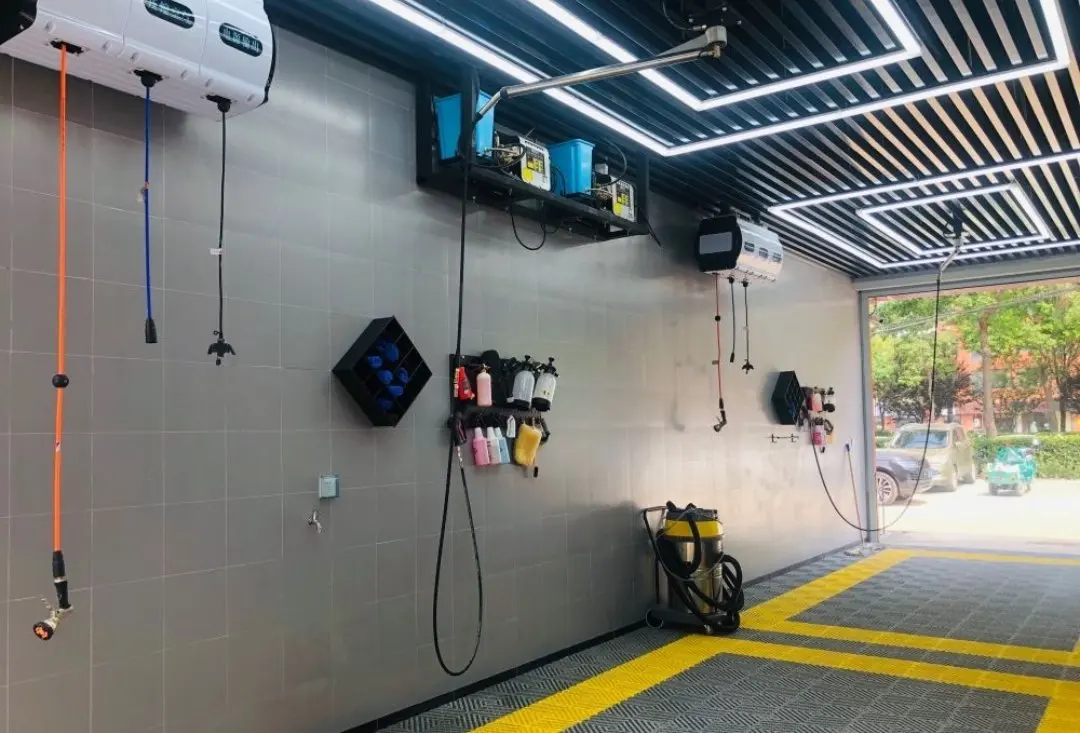 因当天下雨无人洗车,小弟独占两个车位,施工空间巨大。