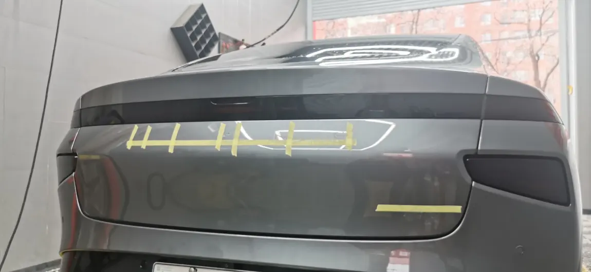 先洗车,用火山泥轻轻打磨贴膜区域,去除附着颗粒物。