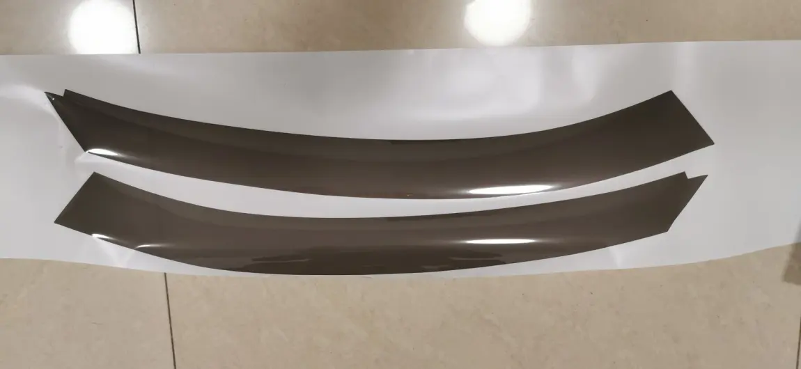 我选择了成品膜,适合初学者。先比对灯与膜位置,然后喷雾、开贴。软刮板负责刮出多余水分,热风枪调至200度烘干定型,注意此处避免温度过高膜变形,先拿小灯练练手,哈哈,So easy啊😄