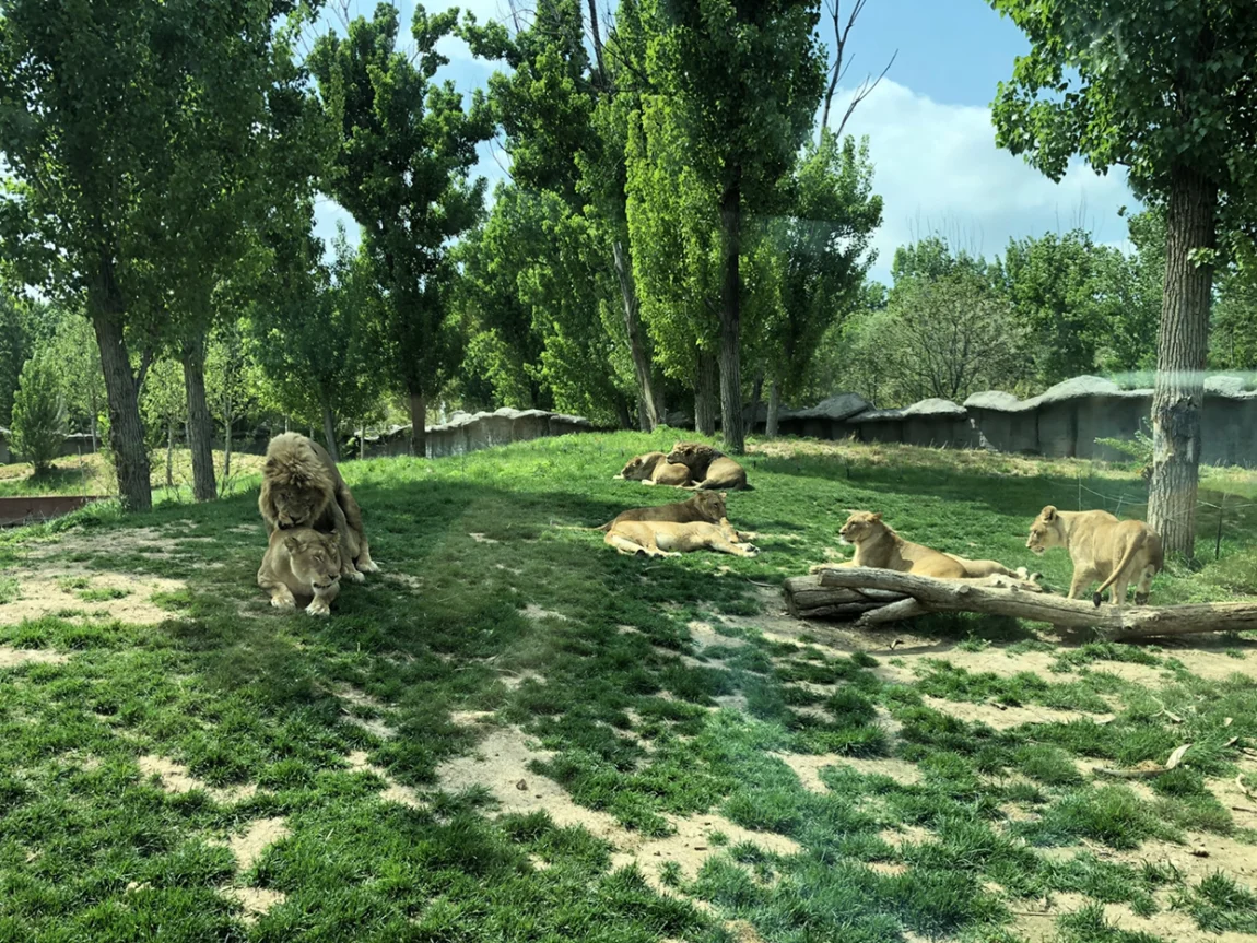 我们乘坐笼车先去看的猛兽,狮子老虎那些的,不过他们都很懒,也不爱动,狮子们都在情情爱爱,大概因为中午的原因吧,吃饱犯困,大多数都是在趴着,不过确实看着真大,真凶猛啊,可比我们家大金毛大太多了!