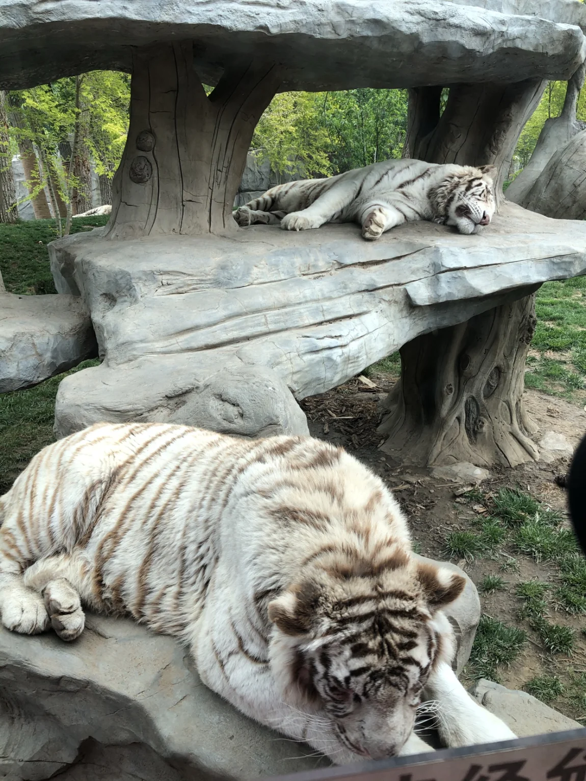 近距离接触老虎感觉比狮子还大,也都懒得不行,找石头趴着,应该也挺无聊的吧,每天被圈在一个狭窄的范围内。