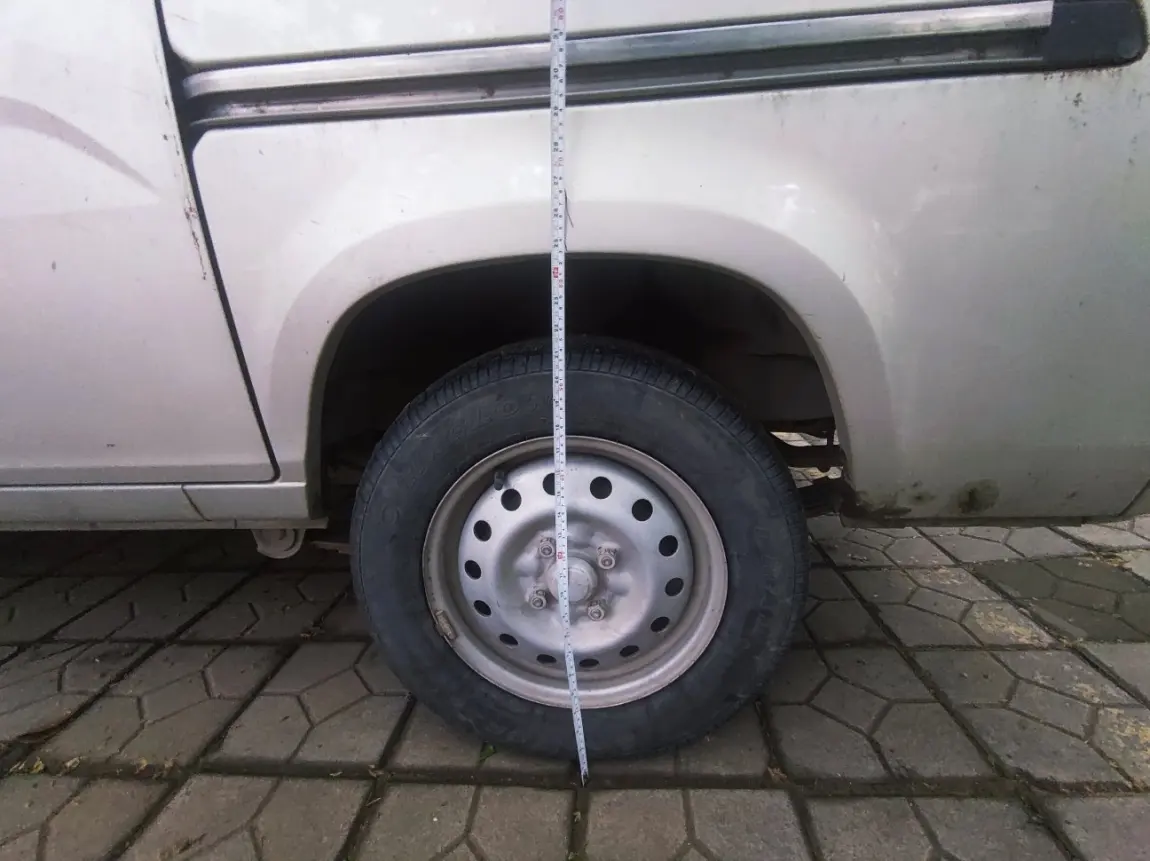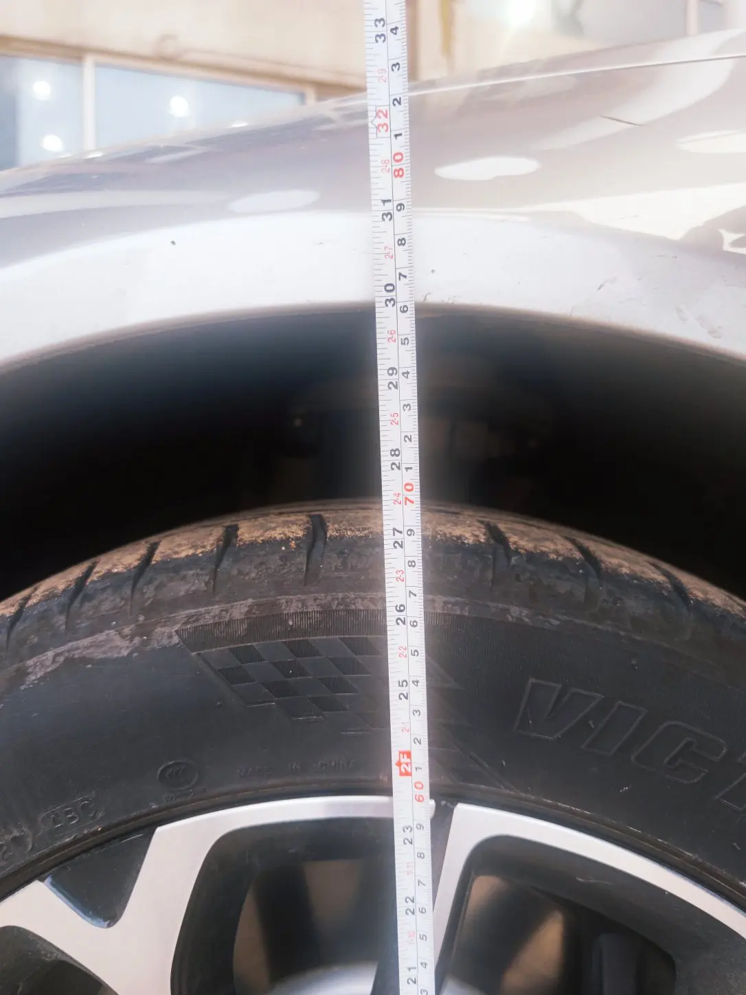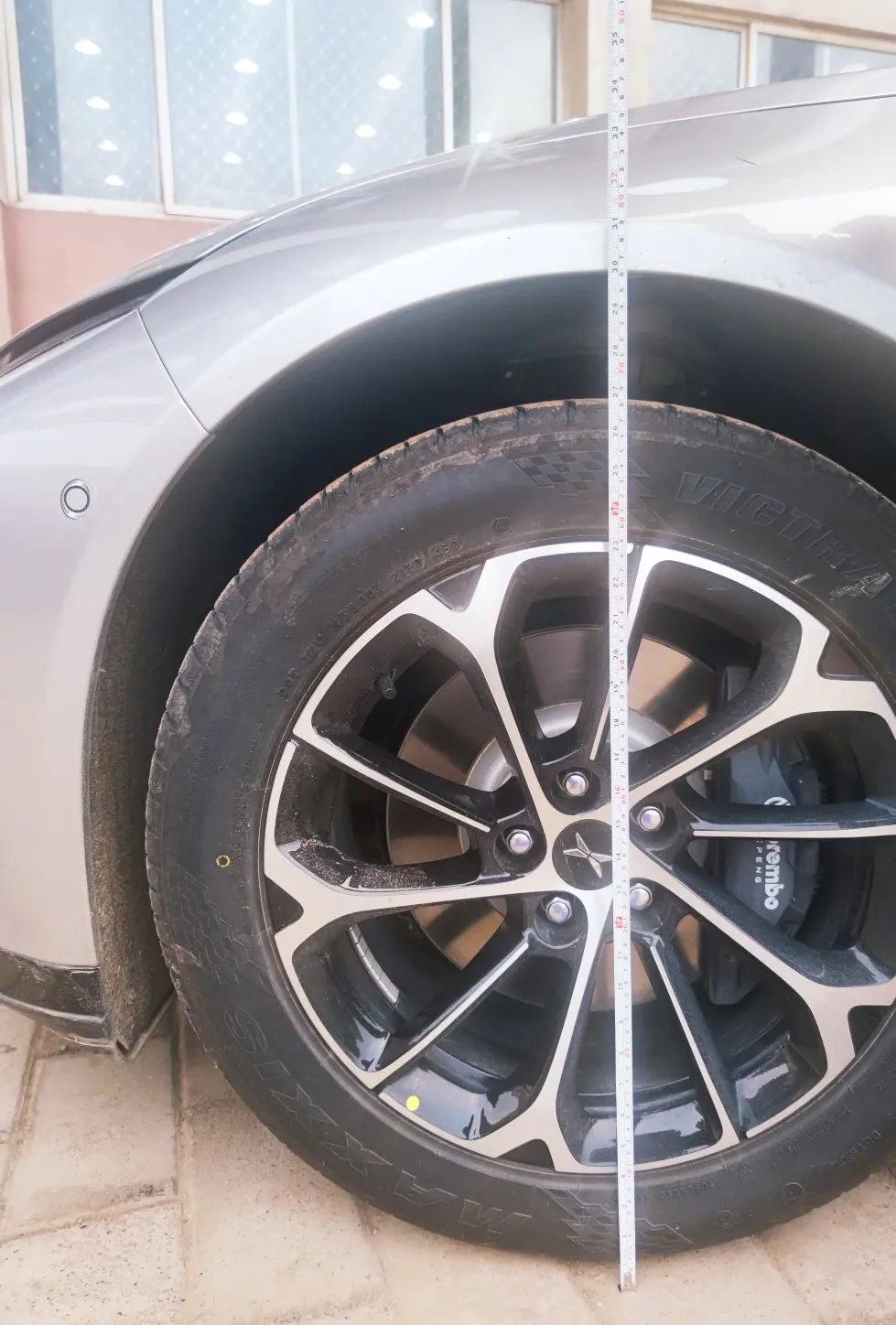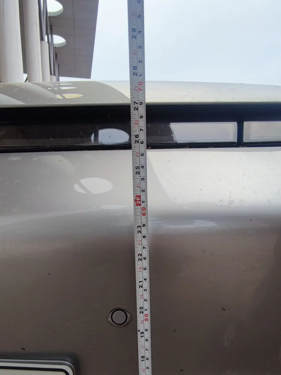为了知道当时小P到底涉水多深,我今天专门量了一下路边的五菱,从视频可以看出,当时的水位最高已经没过了五菱的车轮,请看下图