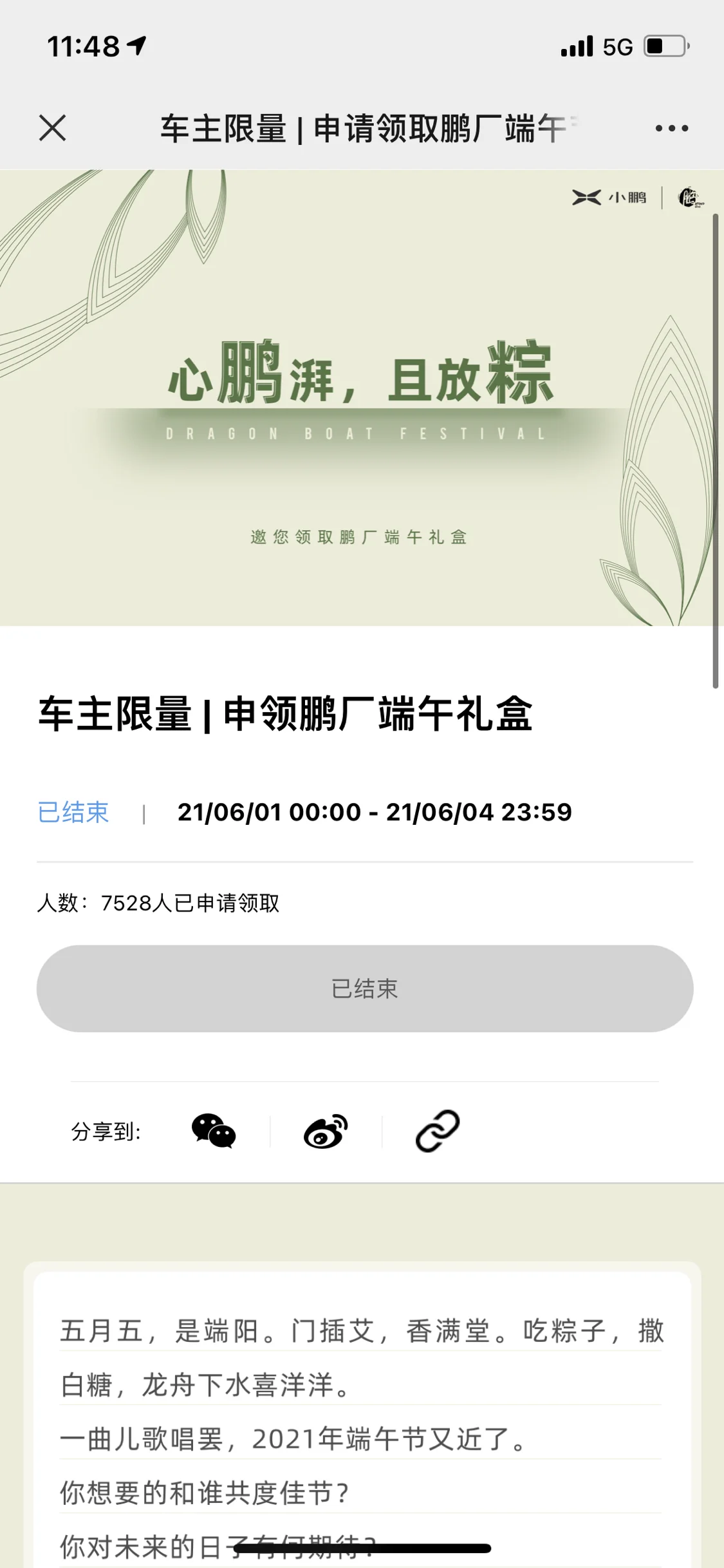 然后同一天,儿童节又看到小鹏申领端午粽子礼盒的活动,立马就"入纸申请"!