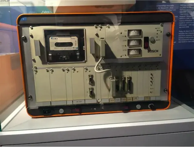 这是博世旗下的Blaupunkt研发出的用于汽车语音导航系统原型:Electronic Pilot for Drviers(简称EVA)。你肯定想象不到他的存储方式是磁带,所以受限于磁带容量的问题,这个原型设备中只存储了斯图加特的地图数据,所以只要开出了斯图加特,就不能提供导航了,因此实用价值相当有限。但是EVA的意义在于能够通过听觉来获取导航信息,开创了另一个感知维度交互的体验。