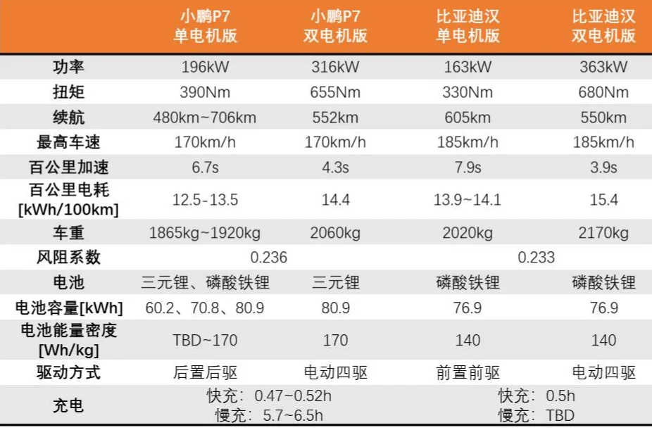 性能方面都是电动车差异不大,但顶配3秒级零百的汉ev只能买p7中配,四驱版p7超30万了,追求性能加速感的话要注意。