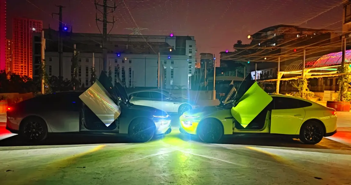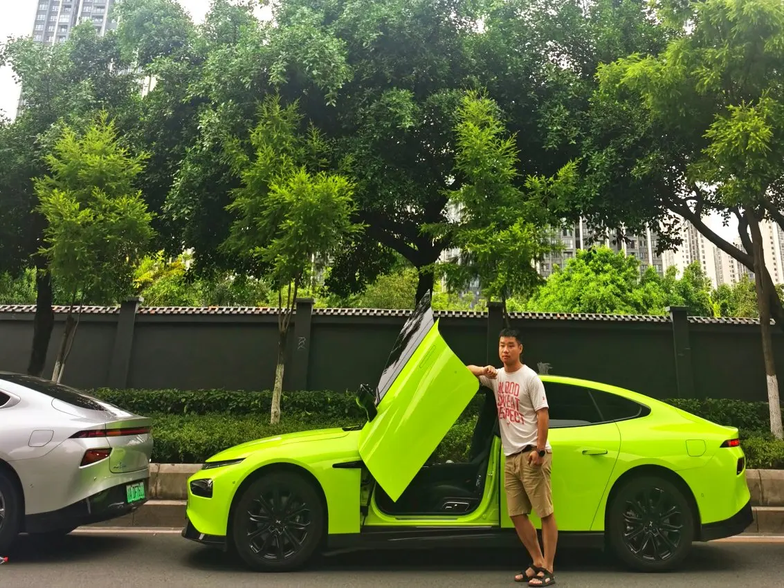参加小鹏线下活动,因为个人原因不想开车。群里的鹏友可以顺路来接我,促成了这一次和绿色鹏翼门的不期而遇。谈论了一路为什么会买这个车选择这个颜色。没过多久同样的剧情,我遇到了第二辆鹏翼门,这次是一辆深灰色的鹏翼门,相比起来绿色确实稳重了不少,但是炫酷的成分一成不变。