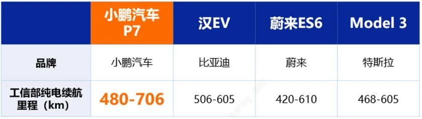 续航里程高低是消费者对于纯电车产品性能关注度最高的一点,小鹏P7分为标准续航版、超长续航版和高性能版,其工信部续航里程最高达706km,即使是标准续航版也有480km的续航能力,相比起其他3款竞品车,续航里程可谓是独一档,此外相比特斯拉Model 3和蔚来ES6,小鹏P7更懂得如何像传统车企一样凭借不同的配置和续航里程搭配使得产品矩阵更加丰满,满足不同类型的消费者对产品的需求。