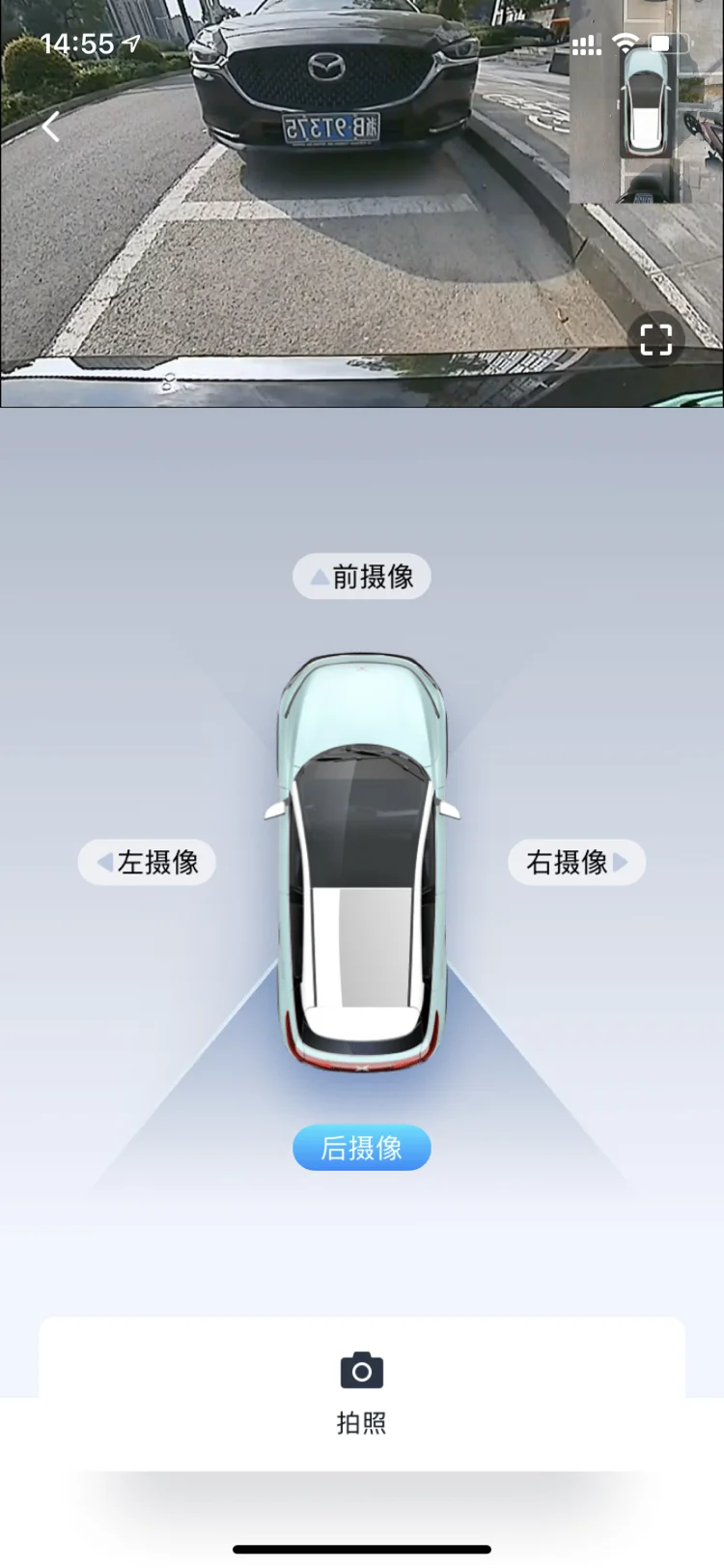 3.车还是很智能的,一旦有追尾前车的迹象时,会有提示音。另外就是车灯是感应自动开启,车身周边有N多摄像头,能够实时感应周边的情况,倒车方便。