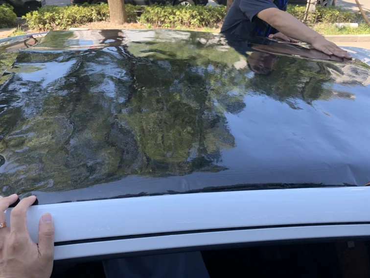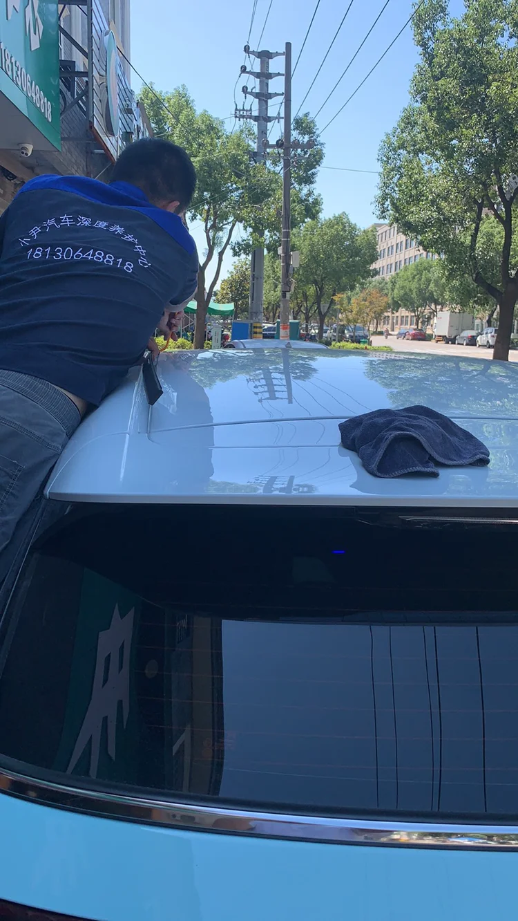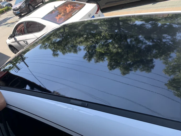 6.天青色这个颜色车顶也是白色这样和前面的大玻璃不是很搭,所以我把车顶白色贴黑膜,看起来高大上了不少,感觉有点像全景天窗,666😊😊😊