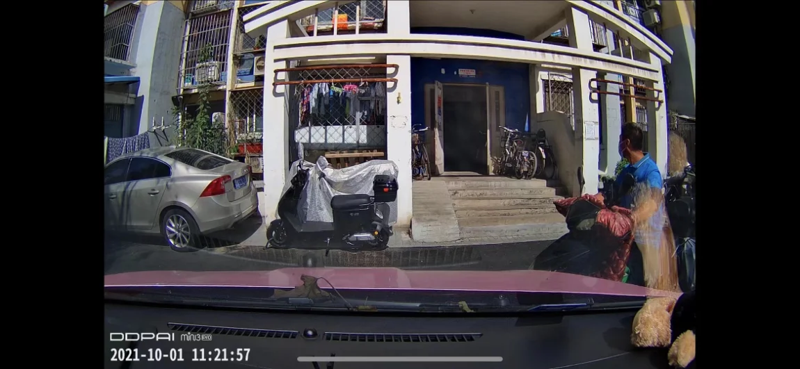 哨兵模式曾在11点21的时候提醒我车辆有异常震动,我当时没有看到,并且我大概就是在两分钟以后下的楼,所以后来我一直认为这个震动是我自己开车门的时候造成的……盯盯拍在这次异常震动之后启动了正常速度的录像模式,终于让我看到了肇事者