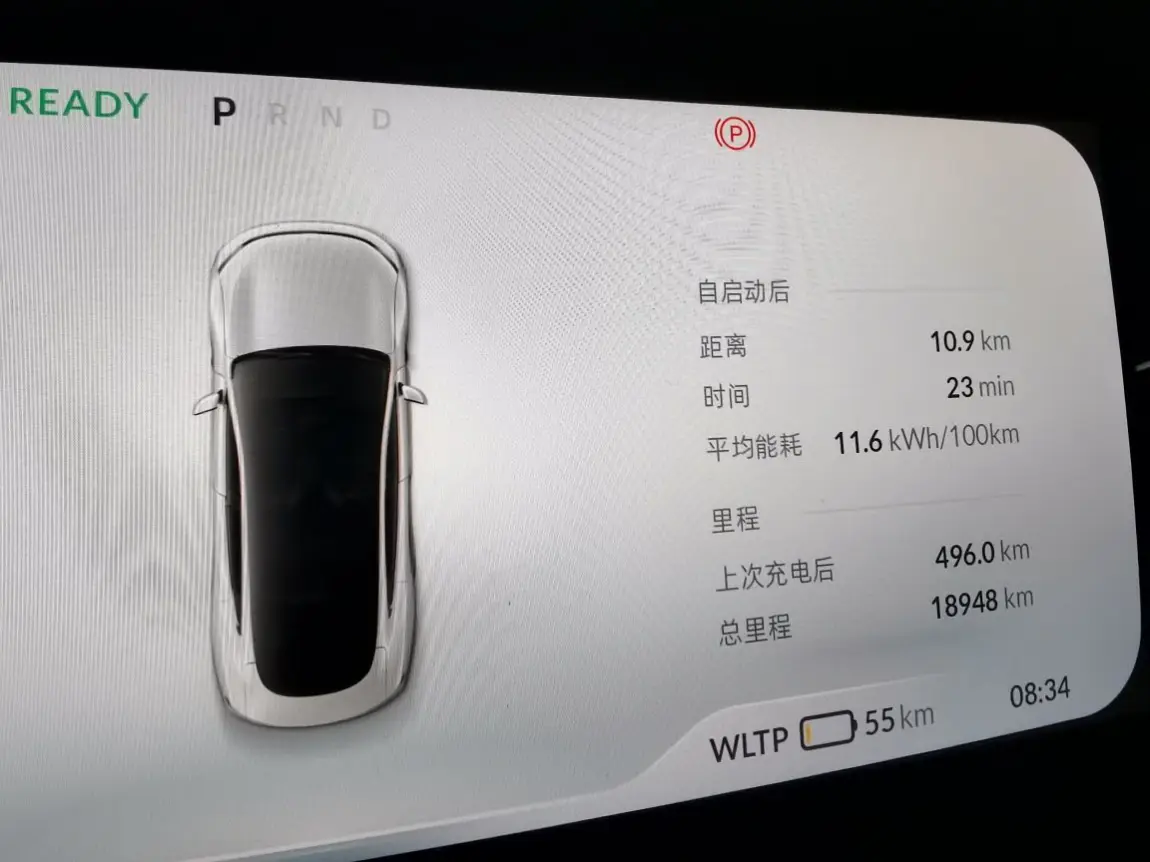续航情况:充满WLTP576公里,实际行驶496公里,剩余55公里,WLTP95.66%。