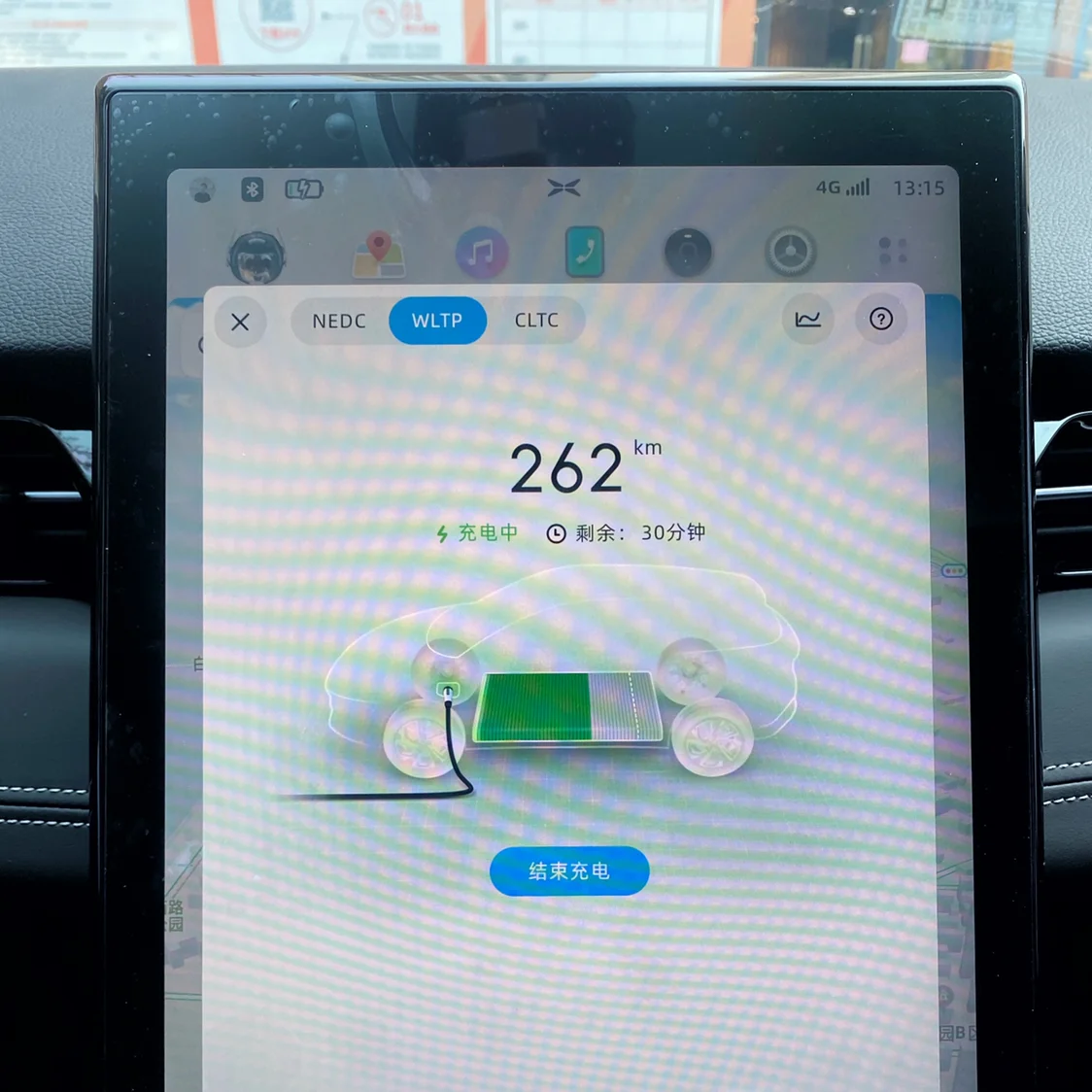 最后在剩余60km的时候进行首次充电:提车WLTP380km - 高速120km - 通勤200km =剩余续航60km。