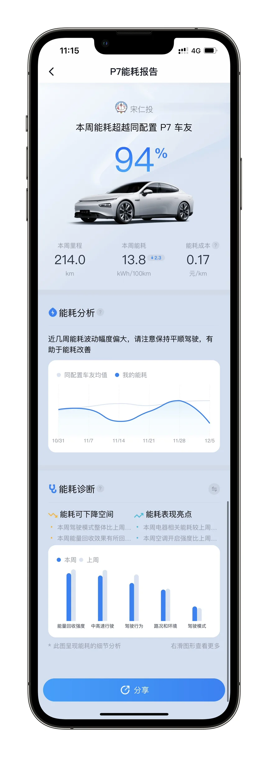 今天就到这里啦,以上数据仅代表个人,别杠,杠就是你对!😏😏最后放一张本周能耗图~#充电与续航# #问问老车主#