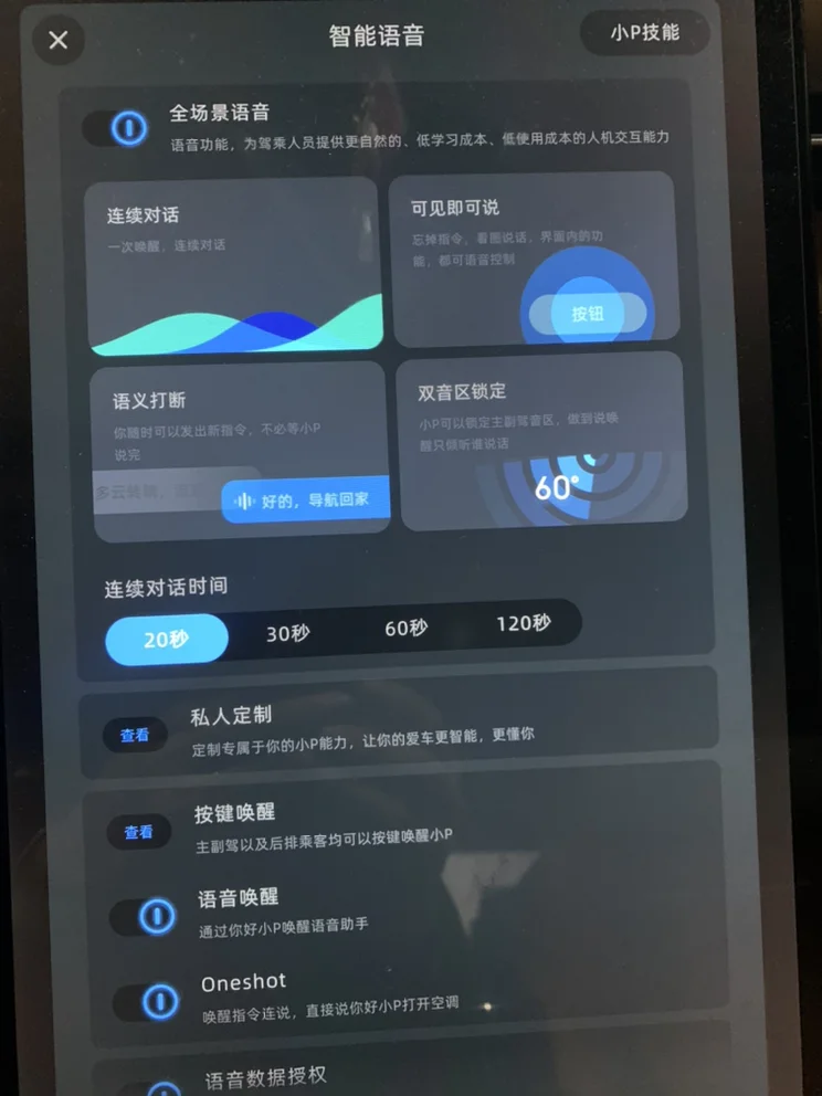 小鹏的全语音场景很实用,实现了车载操控君子动口不动手,除了引擎盖不能用语音控制打开其他的功能基本能用语音控制。